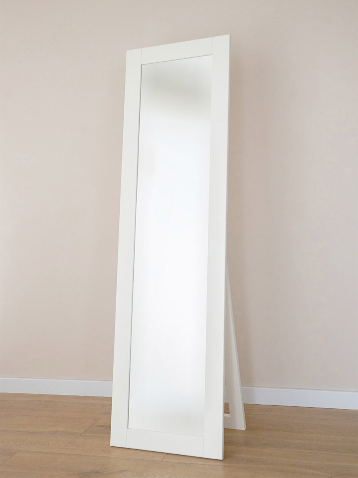 Lustro stojące Ingrid – biała sosnowa rama, która „robi robotę”