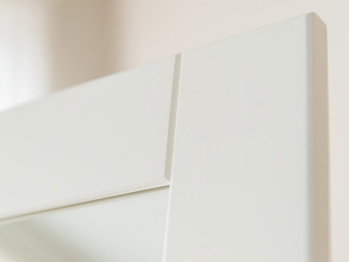 - Wykończenie RAL 9010 / 85% krycia: biel o wysokiej kulturze estetycznej, z widocznym rysunkiem drewna.
