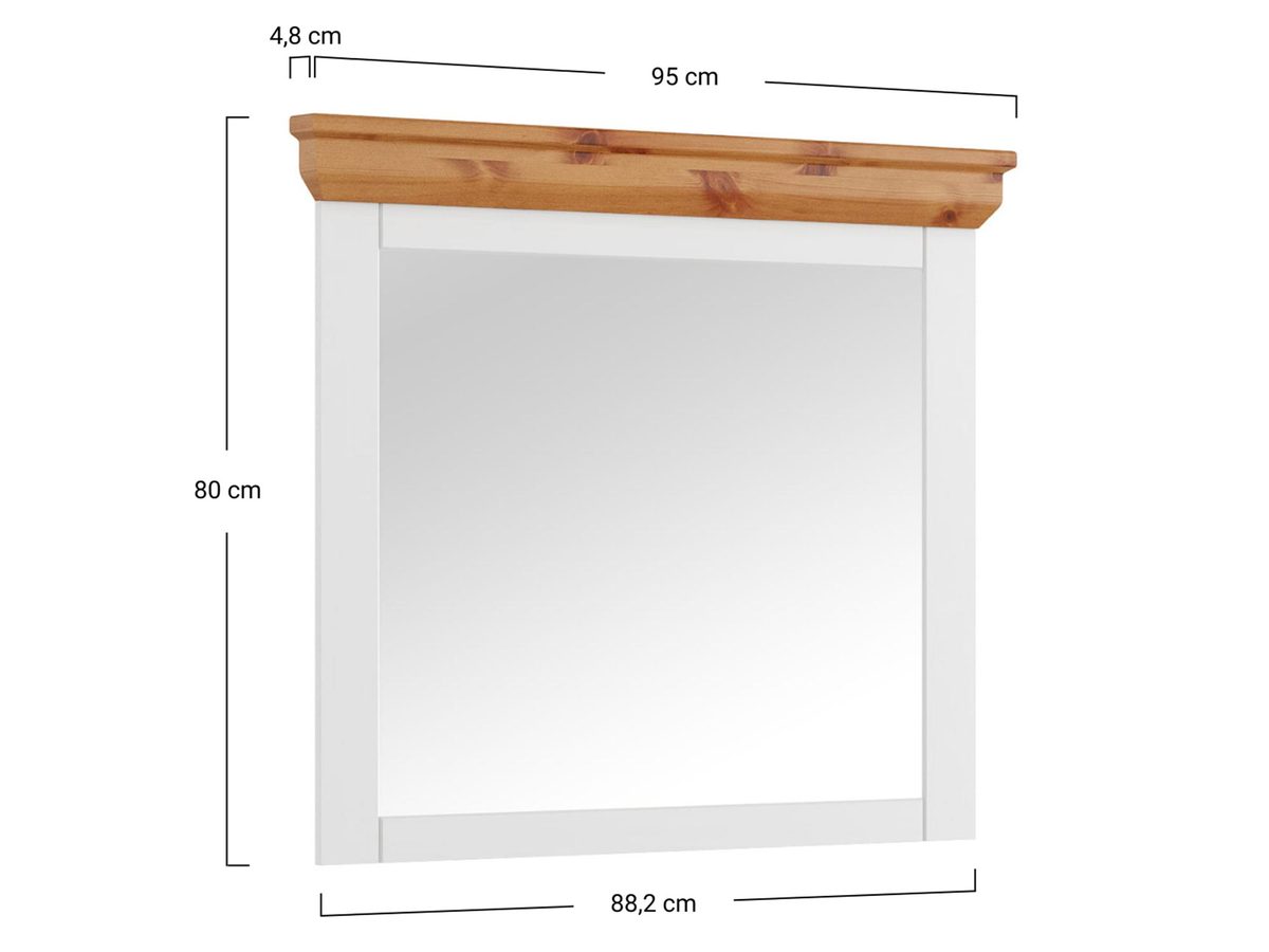 Dodatkowo, rama lustra pokryta została wysokiej jakości bejcą wodną oraz lakierem, co nadaje jej elegancki, półmatowy wygląd, który doskonale pasuje do współczesnych trendów w aranżacji wnętrz. Połączenie białego koloru z naturalnymi tonami drewna sprawia, że lustro wspaniale komponuje się zarówno w klasycznych, jak i nowoczesnych aranżacjach wnętrz.