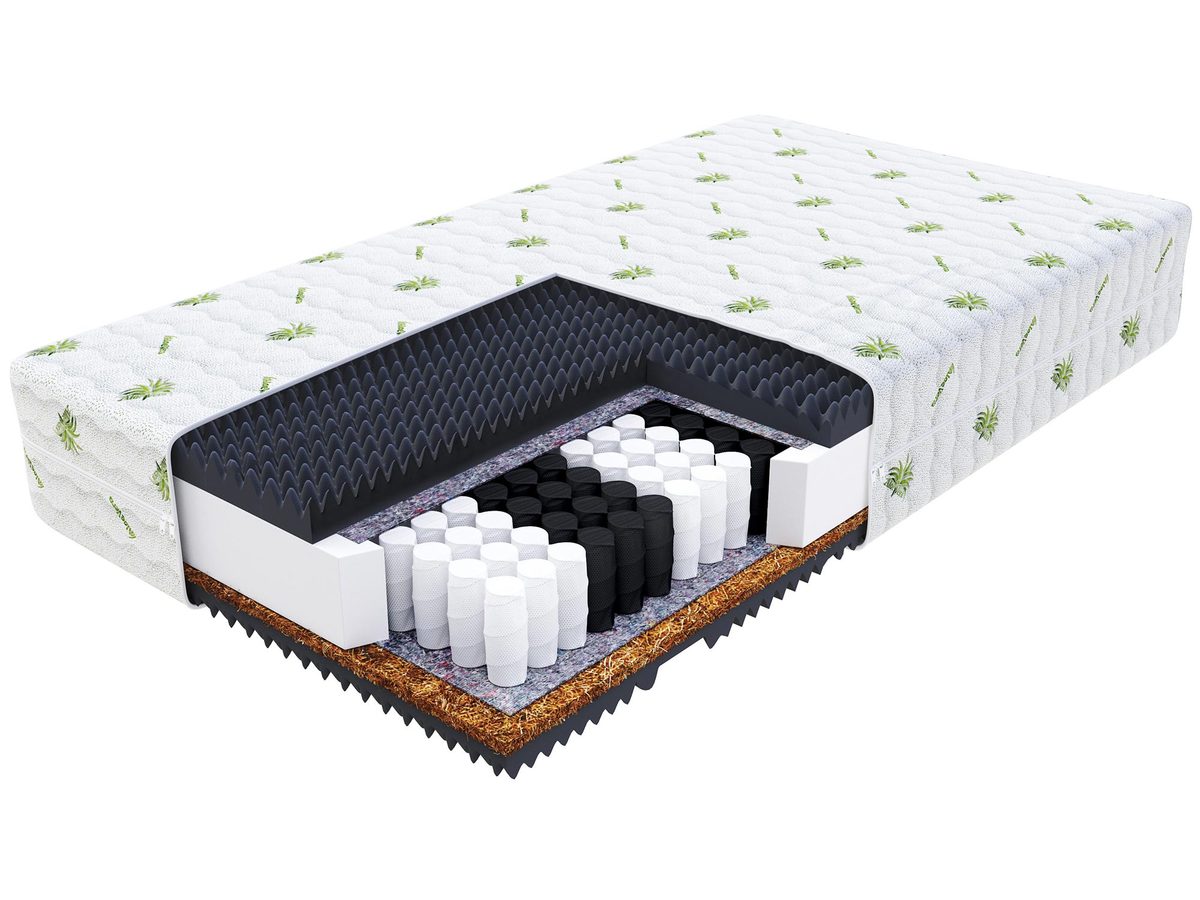 - Wkład Kokosowy: Poprawia cyrkulację powietrza wewnątrz materaca, zapobiega nadmiernemu poceniu się i posiada właściwości antyalergiczne.