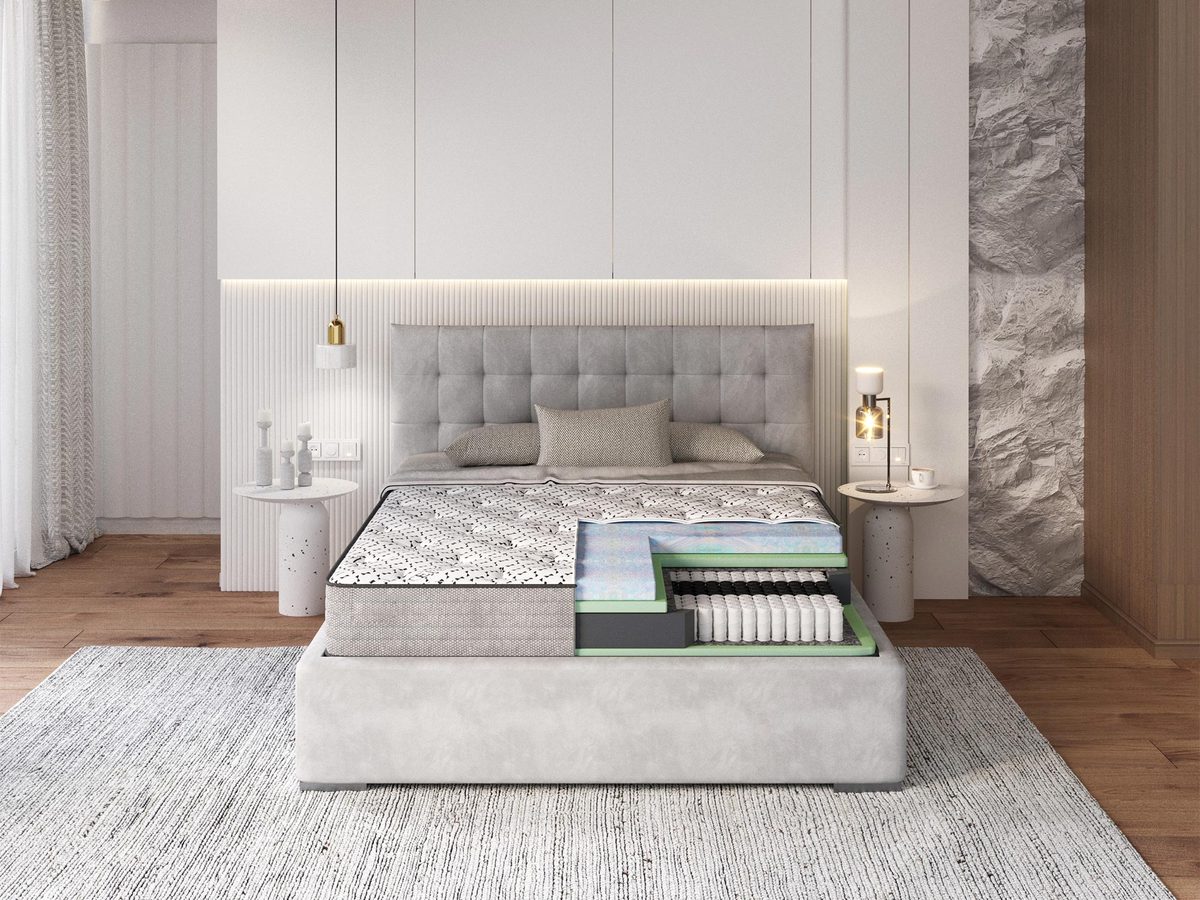 Luksusowy Materac Multipocketowy LOGAN wyróżnia się zastosowaniem zaawansowanego rdzenia typu multipocket, który oferuje znacznie więcej sprężyn niż klasyczne materace pocketowe. Dzięki temu zapewnia lepsze wsparcie i komfort, a każda sprężyna działa niezależnie, minimalizując przenoszenie ruchów między osobami śpiącymi na materacu. Technologia multipocket to gwarancja spokojnego snu, nawet gdy jedna osoba zmienia pozycję spania.