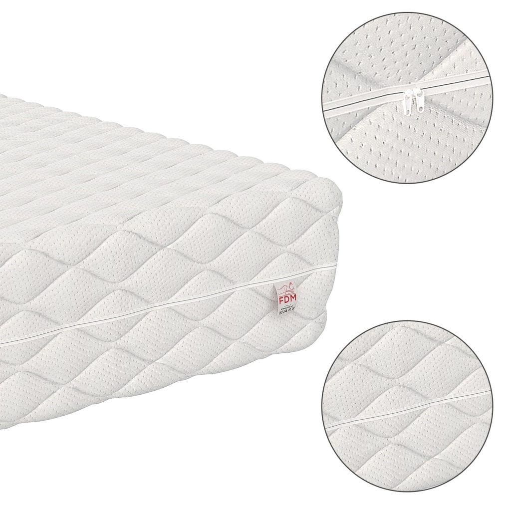Materac zaopatrzono w zapinany na zamek błyskawiczny pikowany pokrowiec. Powstał on z certyfikowanych materiałów antyalergicznych najwyższej jakości. Pokrowiec znamionują niesamowita świeżość i miękkość wykonania. Materiał, z którego został zrobiony zapewnia odpowiedni przepływ powietrza w materacu oraz należytą wentylację. Zastosowanie takiej ochrony korzystnie działa na materac i wydłuża jego żywotność. Dodatkowo jest delikatny w dotyku, odporny na rozciągnięcia i zabrudzenia, a do tego można go prać w pralce w temperaturze 30° C. Pokrowiec wykonano z poliestru.