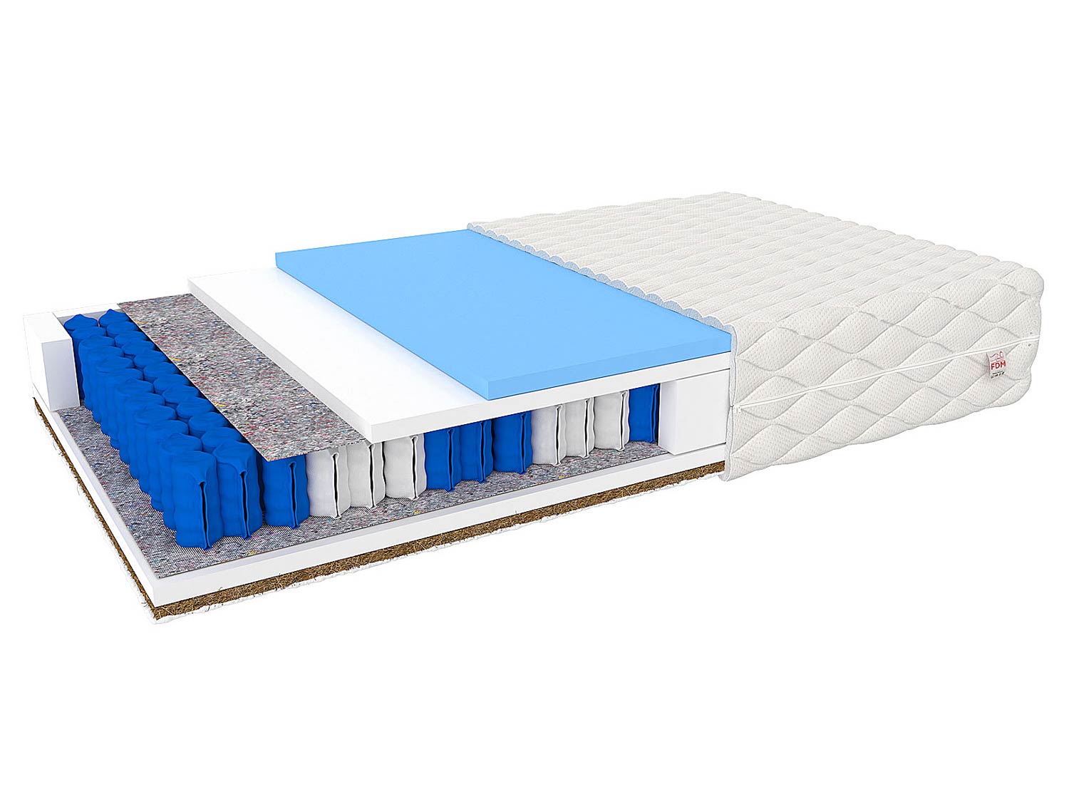• Wysokość: 20 cm | Pokrowiec: Tak, zdejmowany | Budowa: Pianka wysokoelastyczna HR 2 cm, pianka T25 2 cm, przekładka tapicerska, sprężyny kieszeniowe 12 cm, przekładka tapicerska, pianka T25 2 cm, wkład kokosowy 2 cm, włókno klimatyzujące | Materac dwustronny: Tak