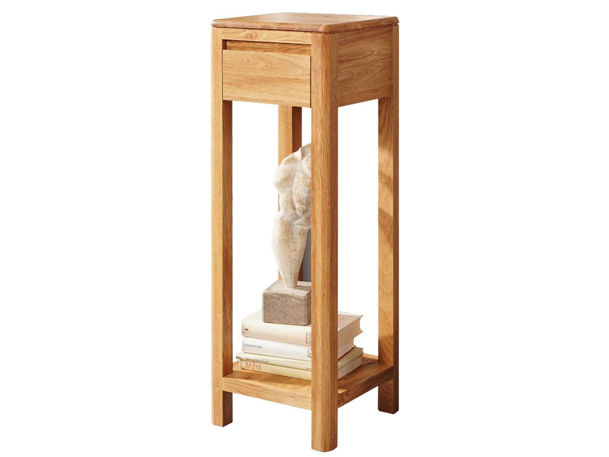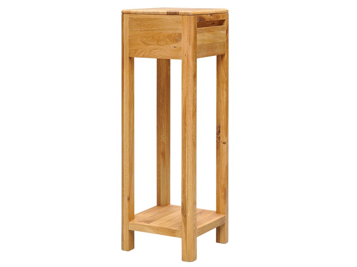 Stolik na kwiaty Klasyczny Verde Classico, z wymiarami 30x30x90 cm, został wykonany z najwyższej jakości drewna dębowego. Jego ciepły odcień i widoczne słoje drewna dodają każdej sztuce unikalnego charakteru.