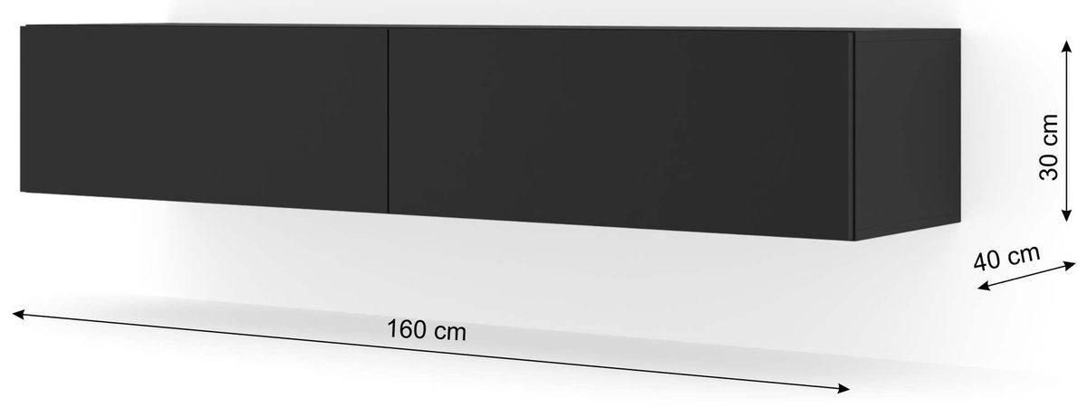 Przede wszystkim industrialna szafka RTV 160 charakteryzuje się nie tylko walorami estetycznymi, ale jest to również mebel bardzo praktyczny. Ze względu iż jest to mebel wiszący, szafka nie rysuje oraz oszczędza przestrzeń. Ponadto wybarwienie frontu nie jest czystą czernią, ale posiada widoczną z bliska, oryginalną falistą strukturę, co dodaje meblu klasy. Co więcej, kolekcja szafek AMIRA o różnych szerokościach pozwala na dowolne łączenie ich w wyjątkowe kompozycje. Szafka posiada dwie przestrzenie otwierane od dołu za pomocą klapy, co stanowi dodatkową przestrzeń na przechowywanie. Zatem bez wątpienia oferowana szafka będzie znakomitym wyborem również dla mniejszych przestrzeni.