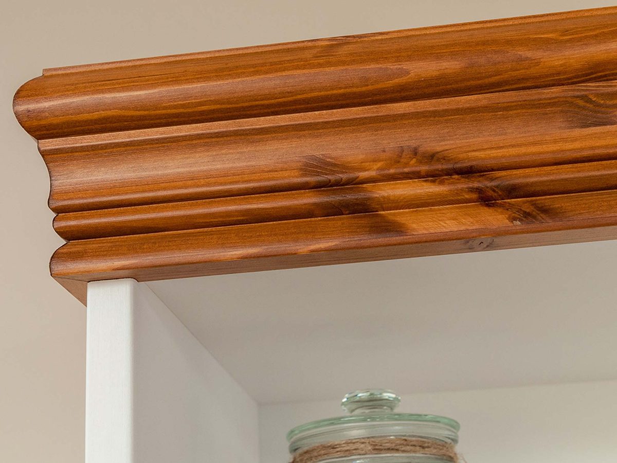 Co najważniejsze regał biblioteczka ANADI posiada cztery głębokie półki, które organizują razem dostatecznie miejsca na wszelkiego rodzaju kolekcje, książki czy dokumenty. Ze względu na materiał wykonania, mebel przy odpowiedniej pielęgnacji może posłużyć nawet przez kilka pokoleń. Oczywiście regał w całości oprócz pleców został wykonany z litego drewna sosnowego, co zapewnia solidność wykonania oraz długoletnią wytrzymałość. Co więcej jest to propozycja nie tylko do salonu czy jadalni, ale również sypialni czy gabinetu, biura. Zdecydowanie wniesie do wnętrza ciepło i rozjaśni całą aranżacje. Dodatkowo ozdobny wieniec górny oraz dolny na styl prowansalski dodają meblu lekkości. Ponadto regał został pokryty farbą wodną o niepełnym kryciu, dzięki czemu widoczne są naturalne sęki występujące w drewnie i wyczuwalna struktura pod opuszkami palców, co bez wątpienia dodaje dodatkowego charakteru.