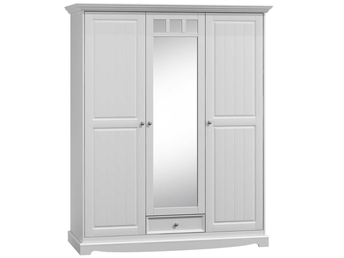 Sosnowa szafa z lustrem INGRID to doskonały wybór do każdego pokoju sypialnianego. Zaprojektowana na styl prowansalski drewniana szafa perfekcyjnie odnajdzie się w każdym klasycznym wnętrzu, ale również tych w stylu vintage. Ze względu na prostą bryłę z delikatnymi frezami, podstawą oraz blatem wykończoną na styl prowansalski, jest to mebel na tyle uniwersalny iż doskonale będzie prezentować się nawet po kilku latach zmiany mody we wnętrzach. Za prawymi drzwiami kryją się cztery pojemne półki zapewniające wystarczająco przestrzeni na organizację. Z kolei za  prawy i środkowym skrzydłem znajduje się drążek na odzież oraz przestrzenna półka na samej górze. Dodatkowo lustro optycznie powiększa pomieszczenie oraz jest praktycznym rozwiązaniem. Co więcej szuflada na samym dole to doskonałe miejsce na przechowywanie bielizny czy innych drobnych akcesoriów. Dodatkowo metalowe uchwyty w kolorze starego złota, srebra dodają meblu charakteru, klasy oraz wyjątkowego klimatu.