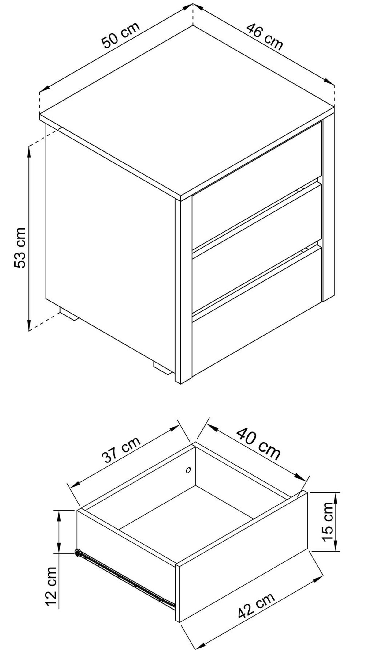 Rysunek techniczny nowoczesnej komody z trzema szufladami