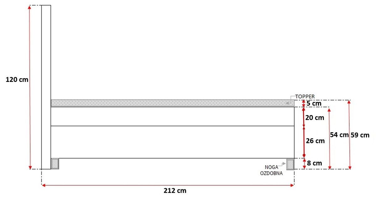 - Topper z pianki T23 – wykonany z wytrzymałej, sprężystej pianki wysokoelastycznej, zapewnia dodatkową sprężystość i miękkość, co gwarantuje w pełni komfortowy sen. Ponadto idealnie dopasowuje się do kształtu ciała.