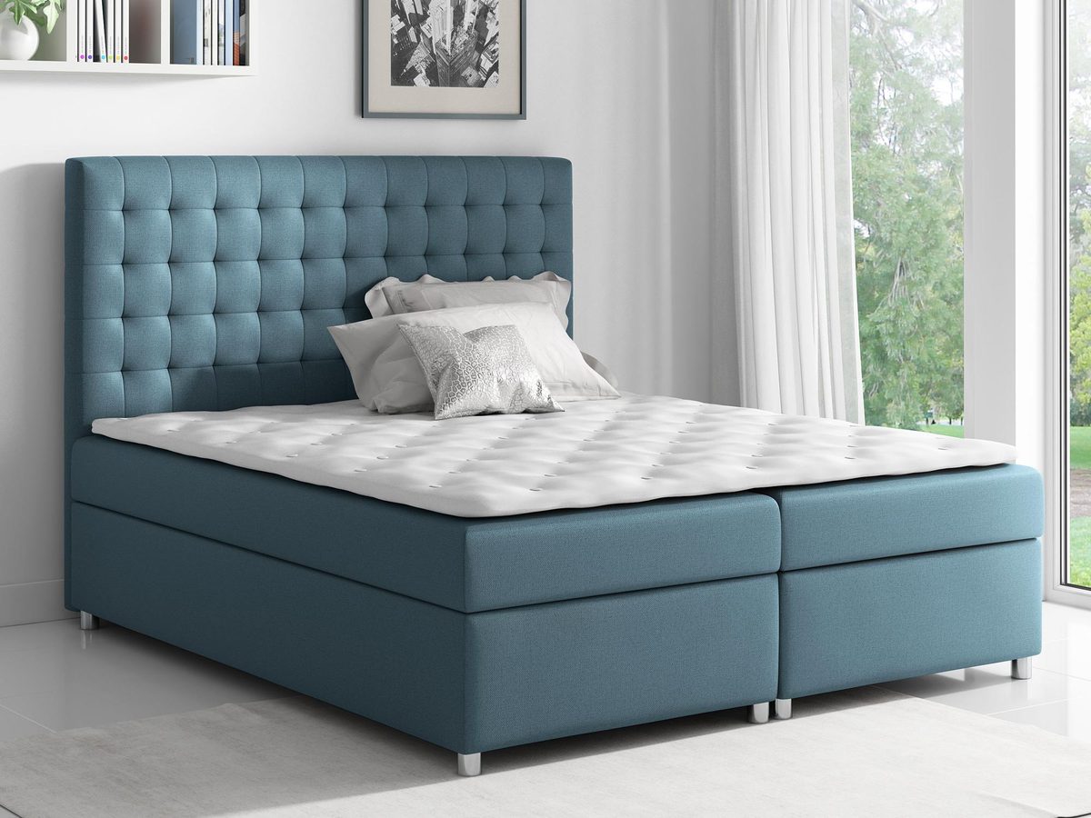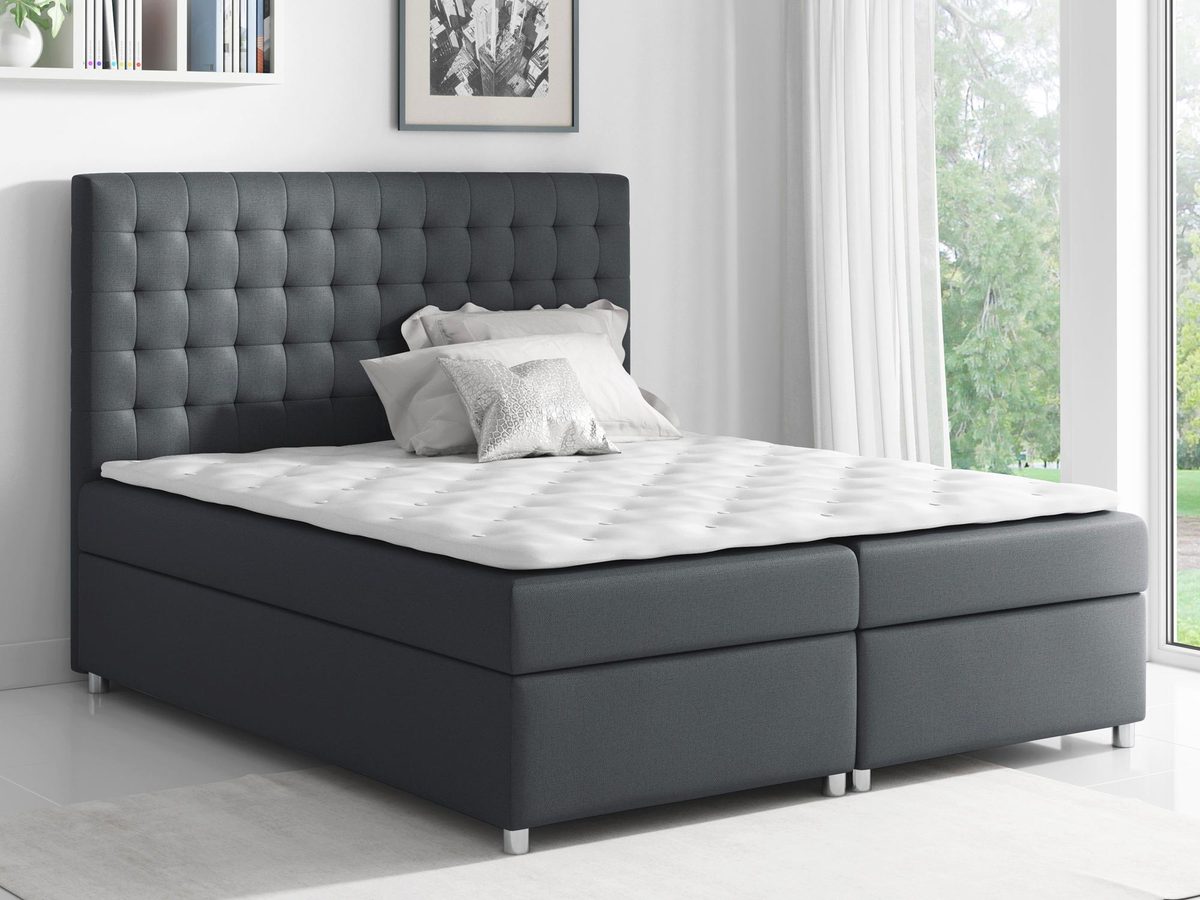 Przede wszystkim nowoczesny design prezentowanego łóżka sprawi, że Twoja sypialnia stanie się wyjątkowa i niepowtarzalna. Ponadto ten tapicerowany model umieszczony na chromowanych nóżkach składa się ze sprężynowego materaca typu pocket, który został umieszczony w drewnianej skrzyni, a także materaca piankowego tzw. toppera wykonanego z pianki wysoko elastycznej. Co więcej połączenie tych dwóch warstw materacy sprawia, że łóżko jest niezwykle wygodne.