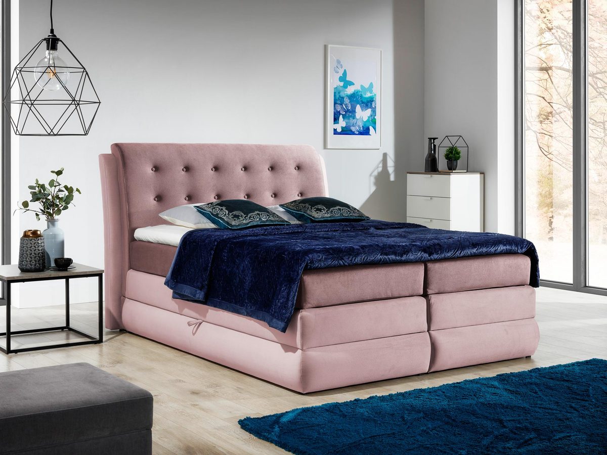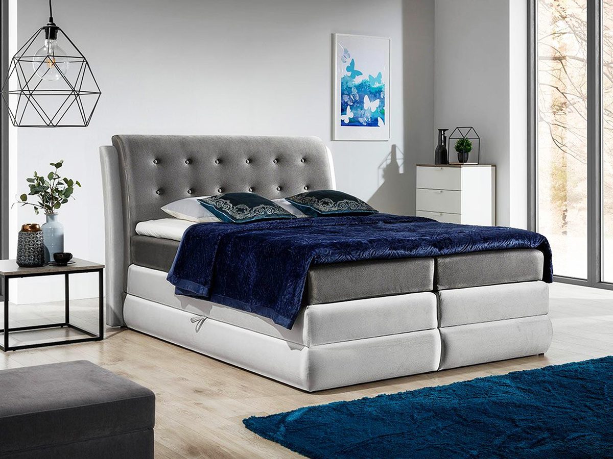Co najważniejsze łóżko sypialniane tapicerowane BARTES świetnie zaprezentuje się w domowej sypialni, a także zapewni doskonałą jakość wypoczynku. Ponadto model ten wyposażony jest w 2 pojemniki na pościel otwierane na bok z automatami sprężynowymi, które znacznie ułatwiają otwieranie skrzyni. Dodatkowo łóżko wyróżnia się ozdobnie pikowanym wezgłowiem z guzikami, które prezentuje się niezwykle elegancko i stylowo. Co więcej zastosowanie podwójnego materac i toppera zapewniają doskonały komfort snu.