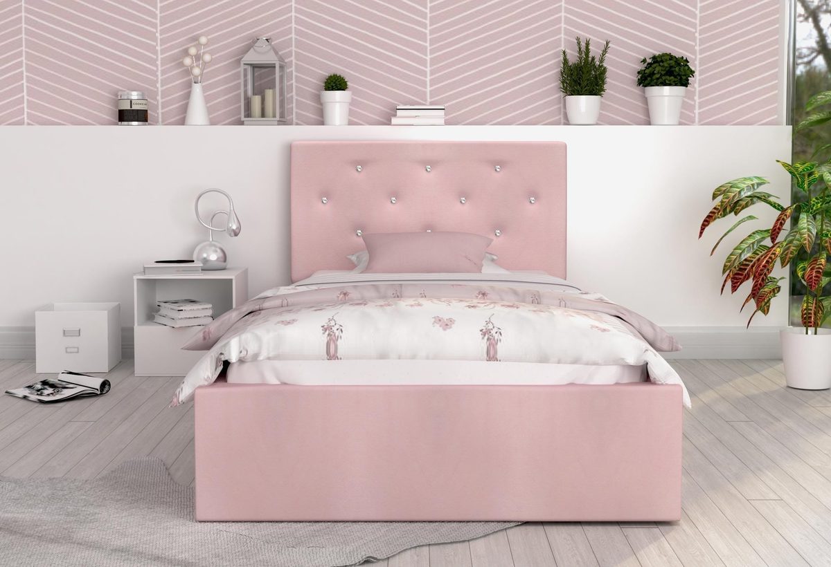 Przede wszystkim komfortowe łóżko tapicerowane 120×200 FRESCO wyprodukowane w Polsce z materiałów wysokiej jakości, dzięki czemu gotowy produkt jest solidny i doskonale się prezentuje. Ponadto atrakcyjny fason w zestawieniu z wytrzymałością daje nam mebel, który bardzo dobrze będzie pasował do wielu pokoi. Co więcej dopasowane do potrzeb użytkownika łóżko gwarantuje komfort oraz beztroski sen. Dodatkowo łóżka są dostępne w różnych rozmiarach i wielu odcieniach, co pozwoli łatwo dopasować je do wielkości i stylu sypialni. W naszej ofercie znajdują się też różnego typu materace, które będą stanowić doskonałe uzupełnienie łóżka. Wezgłowie łóżka jest dostępne w pikowaniu z guzikami lub eleganckimi kryształkami do wyboru.