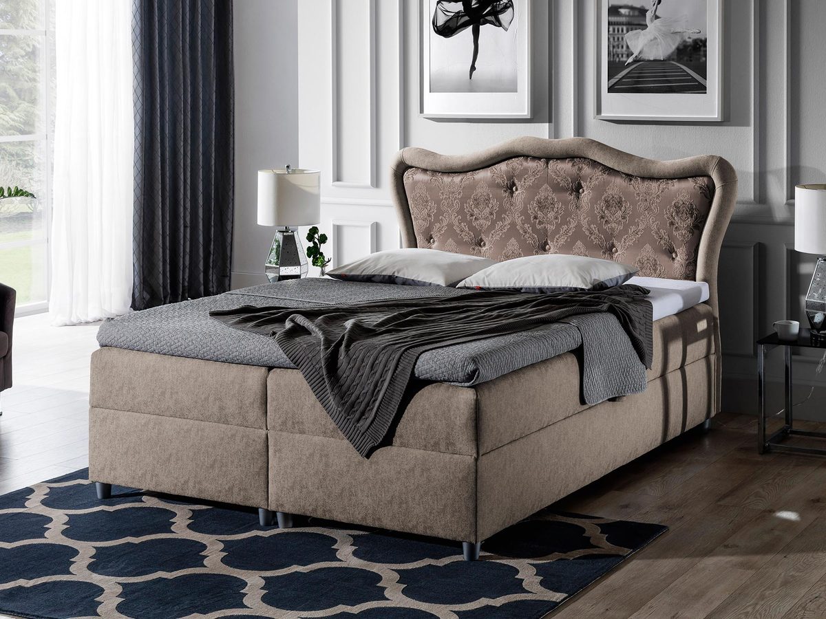 Co najważniejsze łóżko w stylu prowansalskim EMILIO wyróżnia się wysokim zaokrąglonym wezgłowiem, na którym umieszczona została elegancka grafika. Mebel ten doskonale wzbogaci wnętrze i nada mu oryginalnego charakteru. Ponadto łóżko posiada dwa pojemniki na pościel otwierane z obu stron z automatami sprężynowym ułatwiającymi otwieranie skrzyni. Oferujemy również inne modele łóżek kontynentalnych z naszego sklepu.