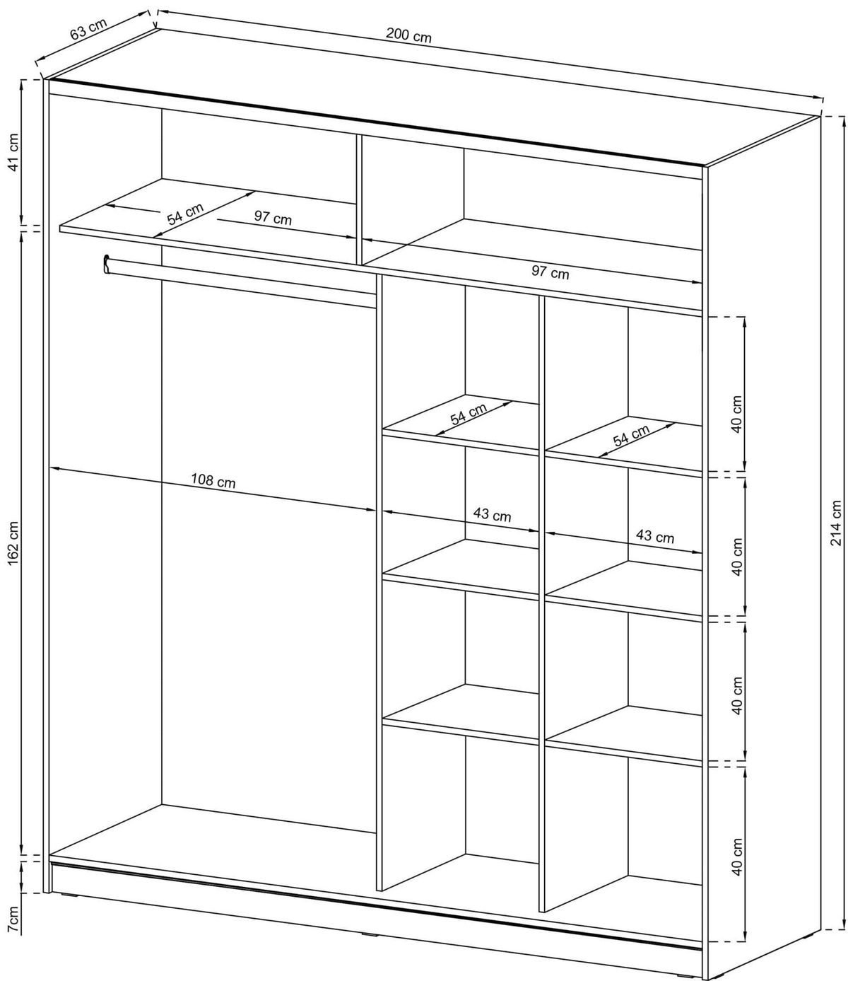 Wymiary 63 × 200 × 214 cm