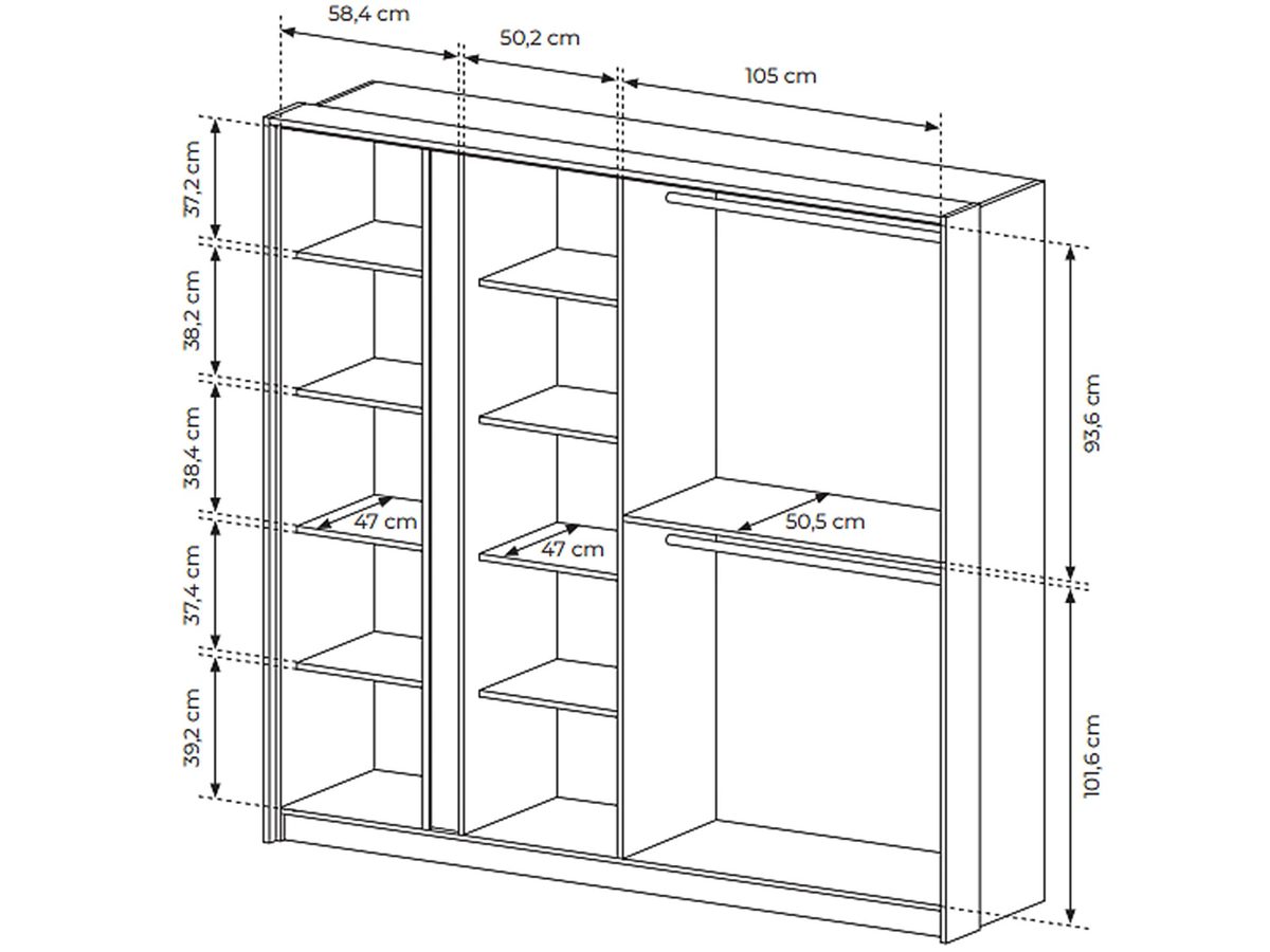 Szerokość: 223,2 cm / Wysokość: 210 cm / Głębokość: 55,4 cm