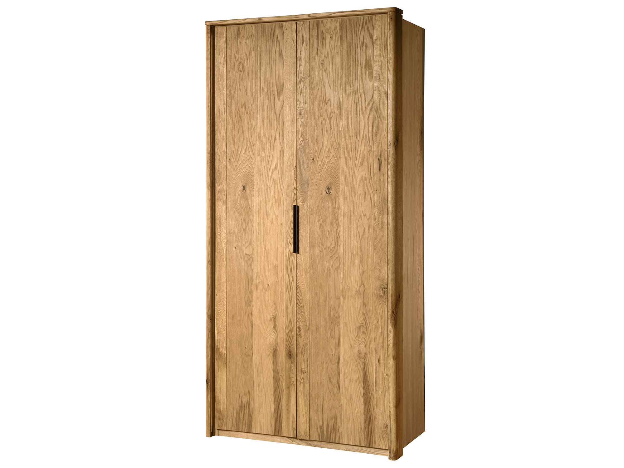 Prosta i elegancka szafa do sypialni Maseri wykonana z najwyższej jakości litego drewna dębowego z elementami fornirowanymi świetnie dostosuje się do każdej aranżacji niejednej sypialni. Ponadto stabilna forma oraz eleganckie, nowoczesne wykończenie sprawią, że szafa dwudrzwiowa drewniana szykownie upiększy niejedną aranżację. Co więcej Maseri ma funkcjonalne drzwi, za którymi mieszczą się dwie niezwykle praktyczne duże półki, a także niezmiernie przydatny drążek na wieszaki z ubraniami.