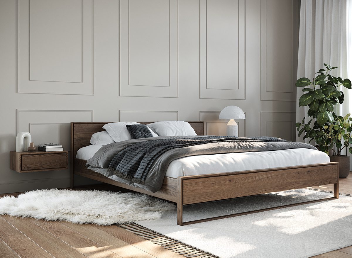 - Ciepło Drewna: Odcień dymionego dębu wprowadza do sypialni atmosferę spokoju i ciepła.