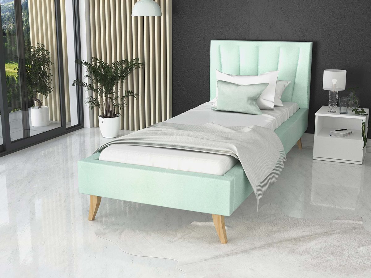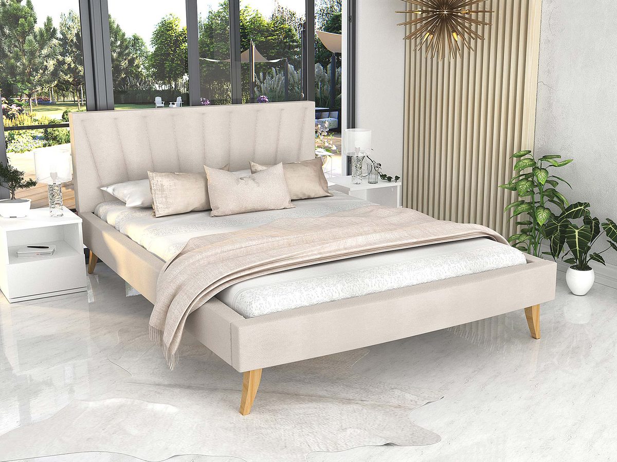 Tapicerowane łóżko na drewnianych nóżkach BONNIE