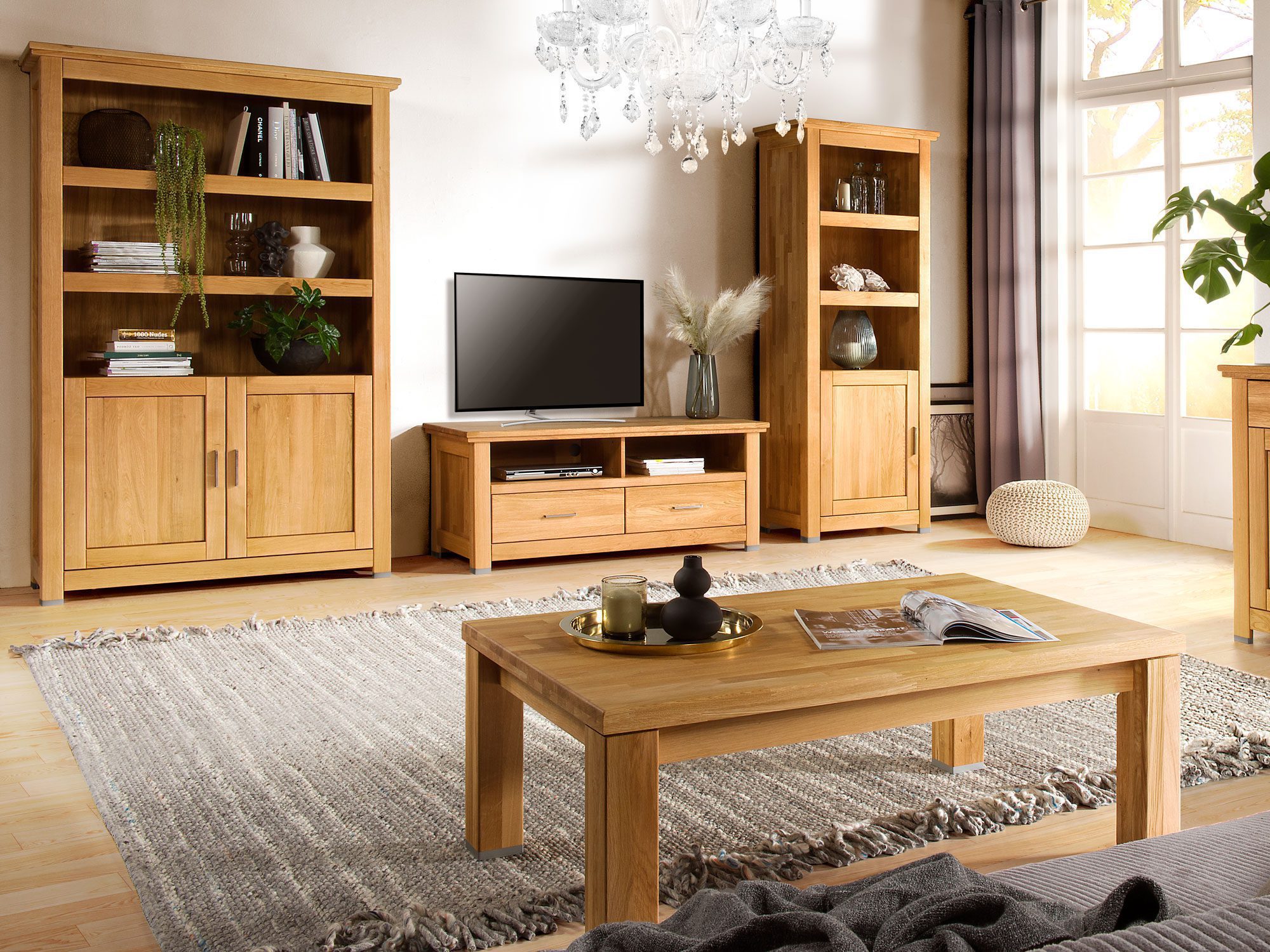 Gustowna szafka RTV Isumi to solidny mebel zrobiony z litego drewna dębowego. Mebel ten fenomenalnie dopełni wnętrze salonu i uatrakcyjni każde wnętrze. Ponadto mebel umieszczony jest na solidnych nóżkach, dzięki czemu zyskuje lekki charakter.