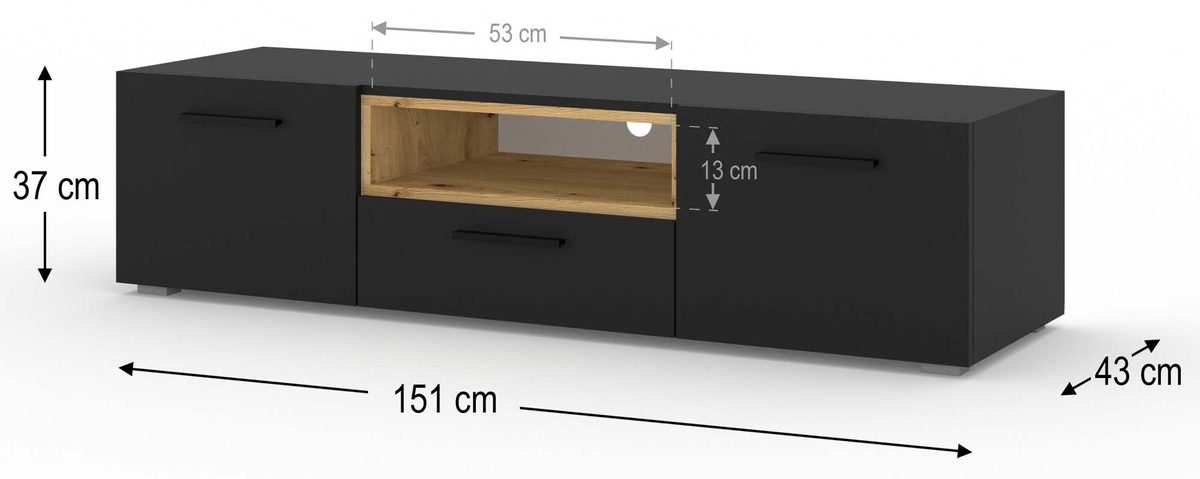 - Praktyczny otwór na kable w tylnej płycie szafki RTV