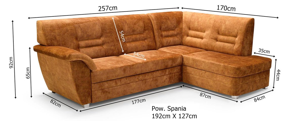 Przy zakupie prosimy o podanie rodzaju tkaniny, jej numeru oraz informacje o wybranej stronie narożnika: prawa lub lewa.
