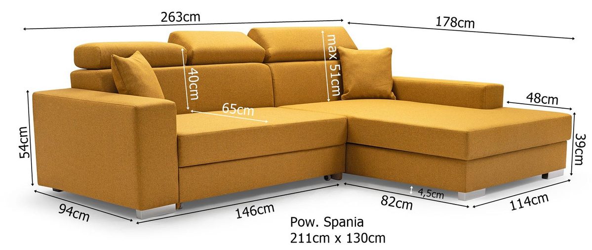 Przede wszystkim prezentowany mebel wypoczynkowy z funkcją spania to świetny model do salonu zapewniający doskonały komfort, a przy tym doda przytulnego klimatu we wnętrzu. Ponadto gustowny narożnik urzeknie każdego swoim stylowym wyglądem w nowoczesnej odsłonie. Co najważniejsze ten nowoczesny narożnik wyposażono w przestronny pojemnik na pościel i funkcję spania umożliwiającą rozłożenie siedziska i przenocowanie zaproszonych gości w komfortowych warunkach. Dodatkowo narożnik MEXICO DE LUX dostępny jest w szerokiej gamie tkanin obiciowych oraz w wielu wariantach kolorystycznych dlatego można z łatwością idealnie dopasować go do swojego wnętrza. Co więcej poza funkcją wypoczynkową doda estetyki i stanie się ozdobą pomieszczenia.