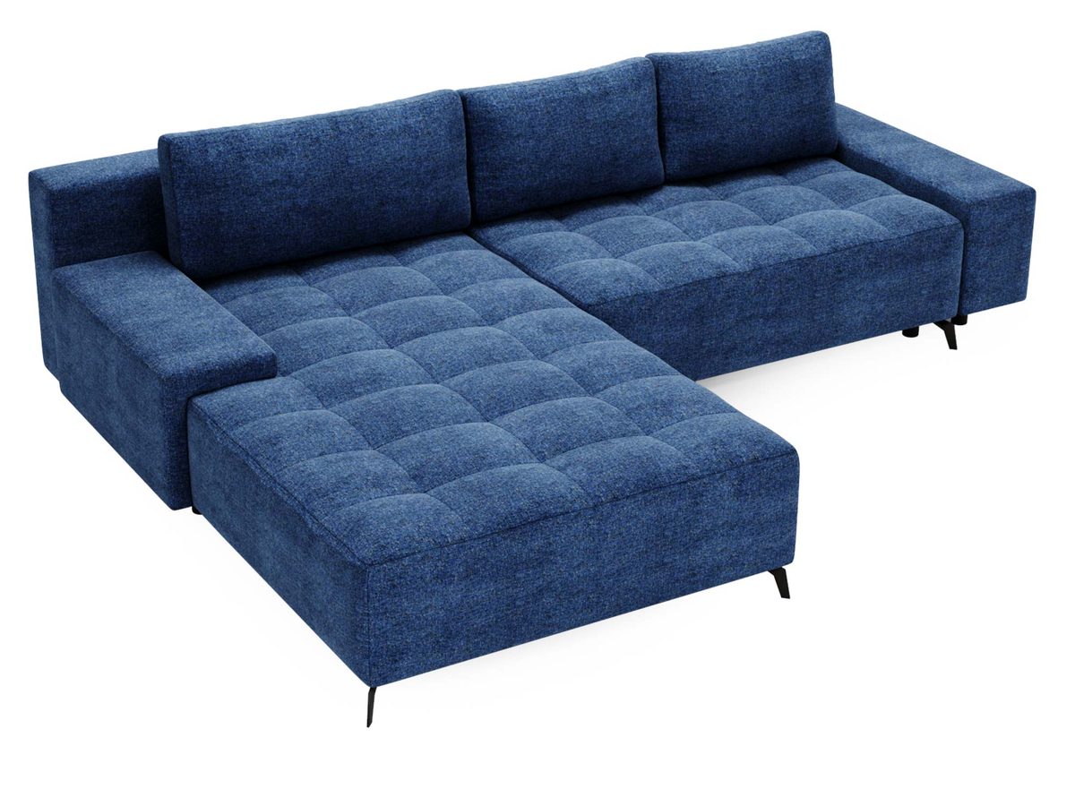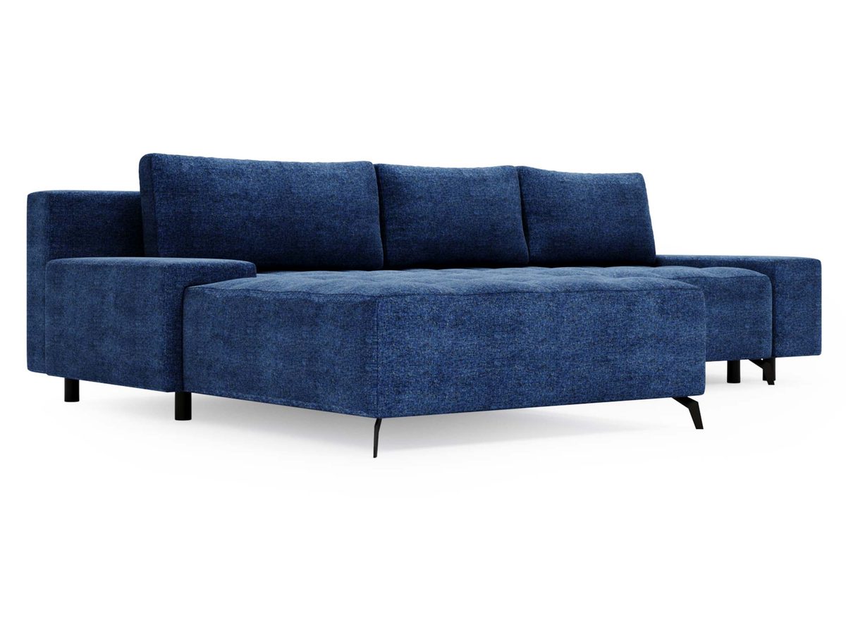 Narożnik granatowy z pikowanym siedziskiem i czarnymi nóżkami