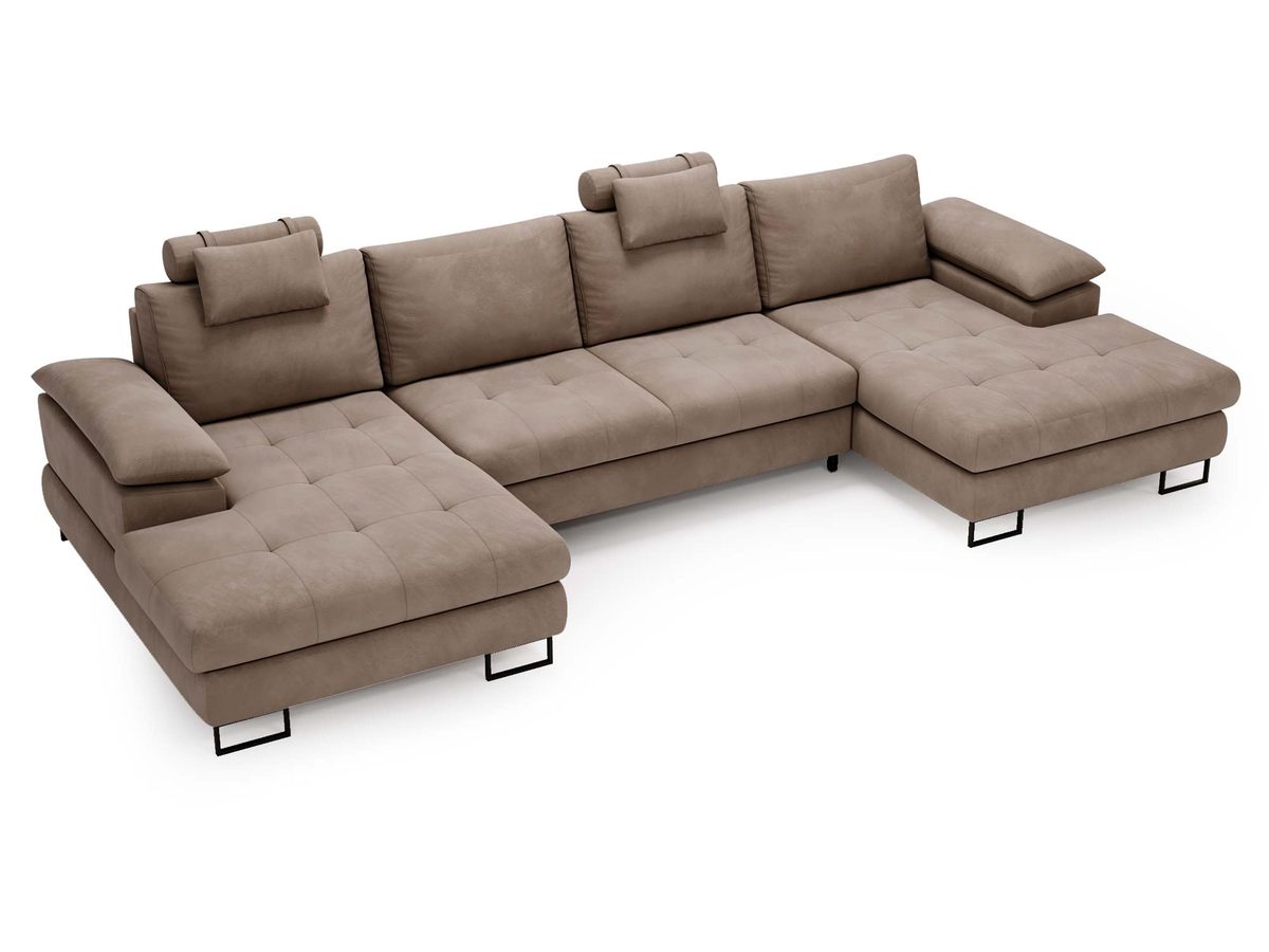 Narożnik BROOKLYN zachwyca swoją elegancką formą w kształcie litery U, co nadaje mu unikalny wygląd. Ten nowoczesny design doskonale współgra z chromowanymi nóżkami, które nadają meblowi lekkości oraz podkreślają jego nowoczesny charakter. Dzięki tapicerowanemu tyłowi, narożnik może być swobodnie ustawiony w dowolnym miejscu w salonie, co daje pełną elastyczność w aranżacji wnętrza.