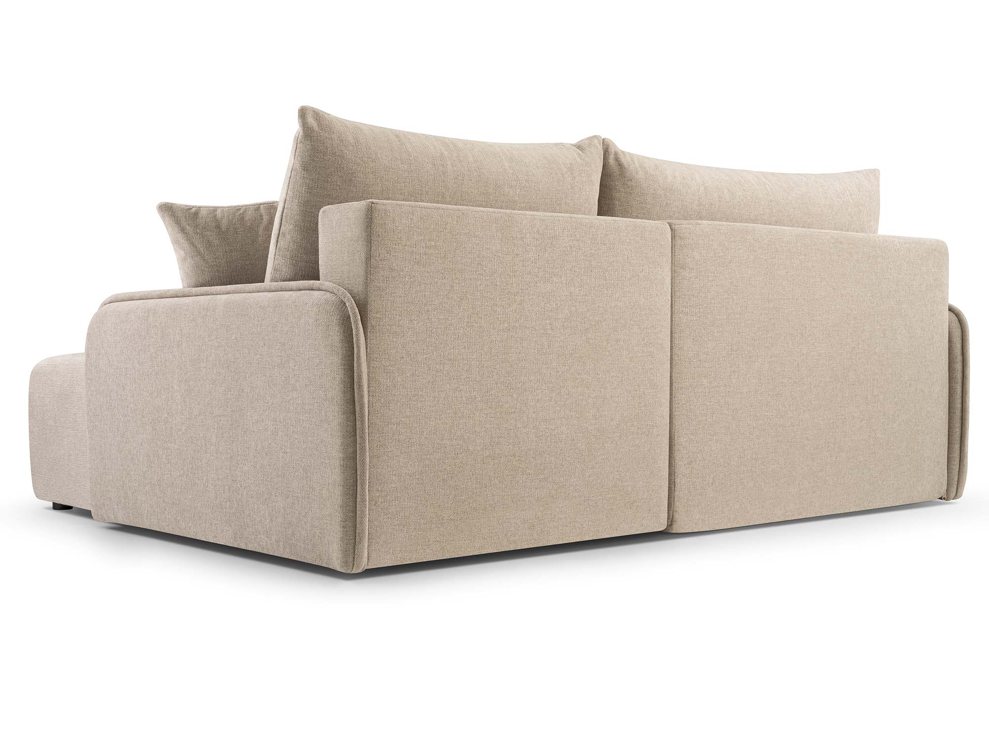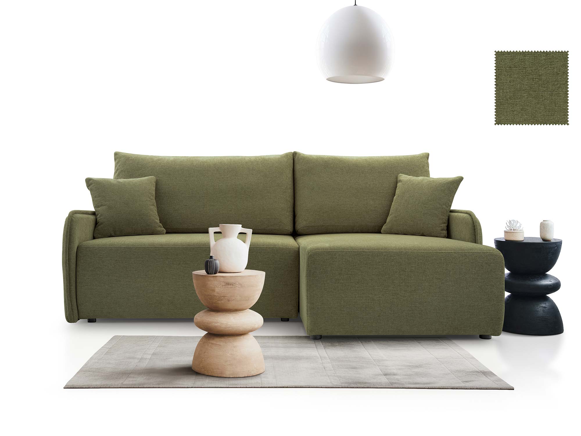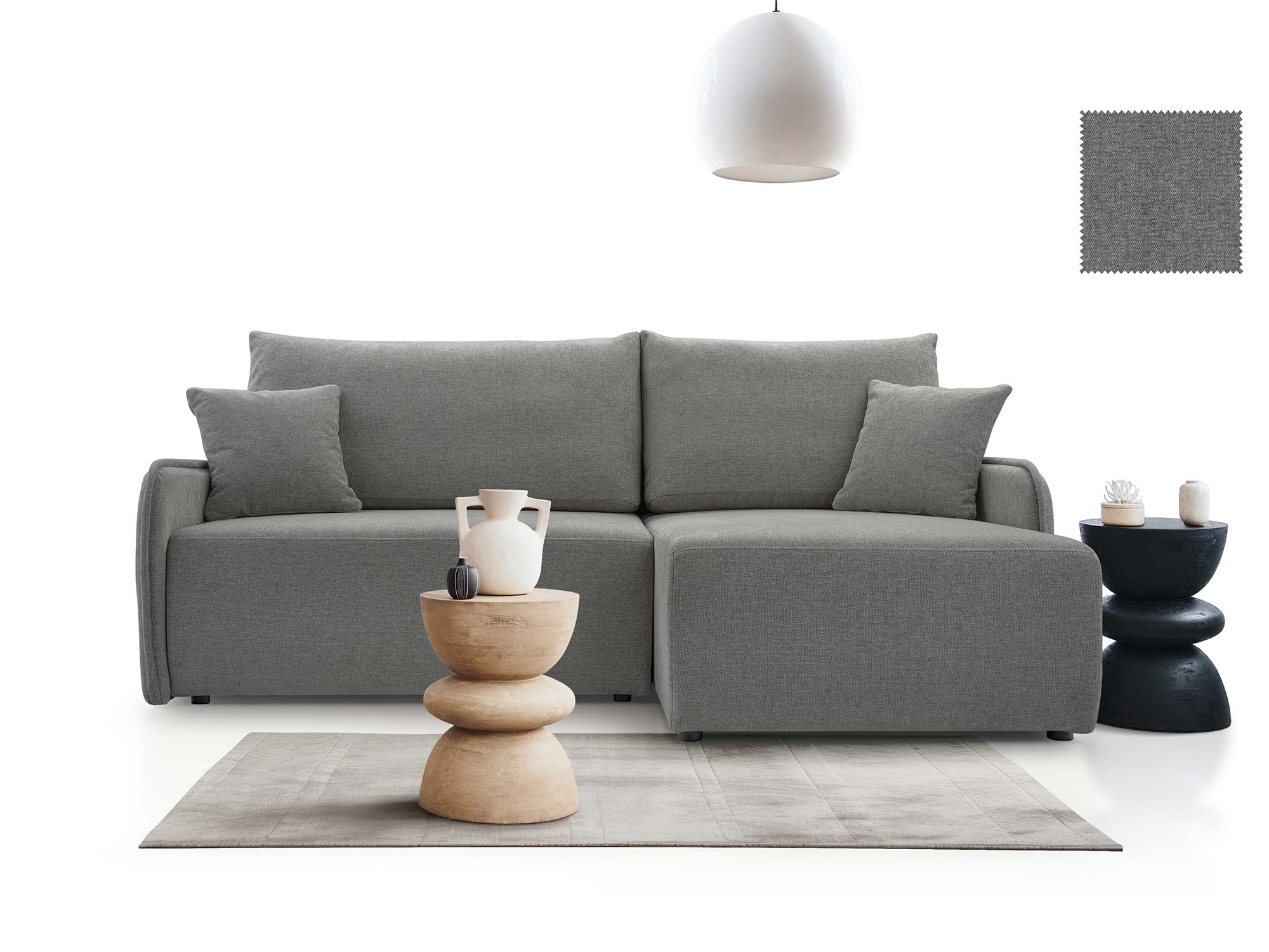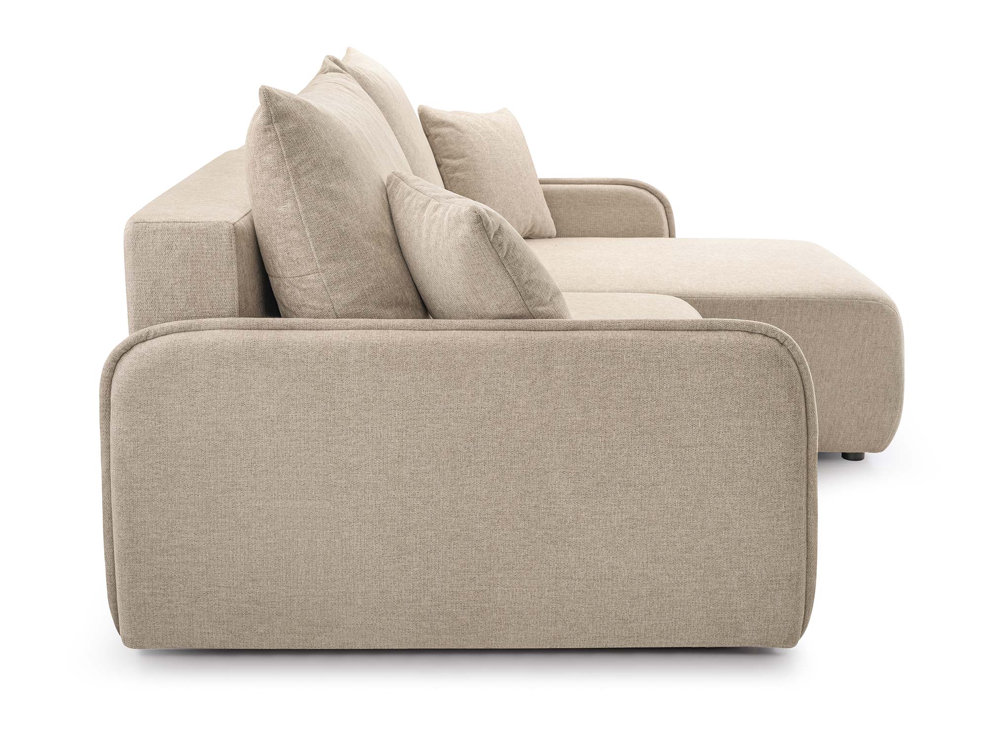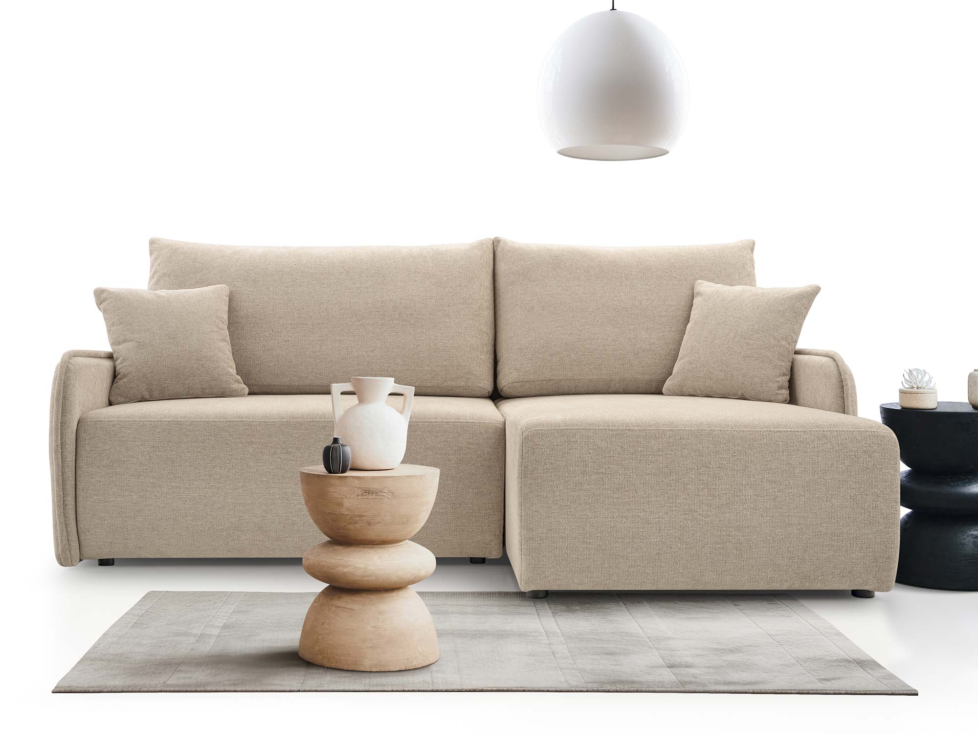 Mechanizm rozkładania typu DL sprawia, że rozłożenie kanapy jest proste i szybkie. W kilka chwil zmienisz ją w przestronne łóżko o powierzchni 188×130 cm. To rozwiązanie idealne, jeśli często odwiedzają Cię goście lub jeśli potrzebujesz dodatkowego miejsca do spania. Wbudowany pojemnik na pościel pozwala na przechowywanie kołder, poduszek i koców, utrzymując porządek i maksymalnie wykorzystując przestrzeń.