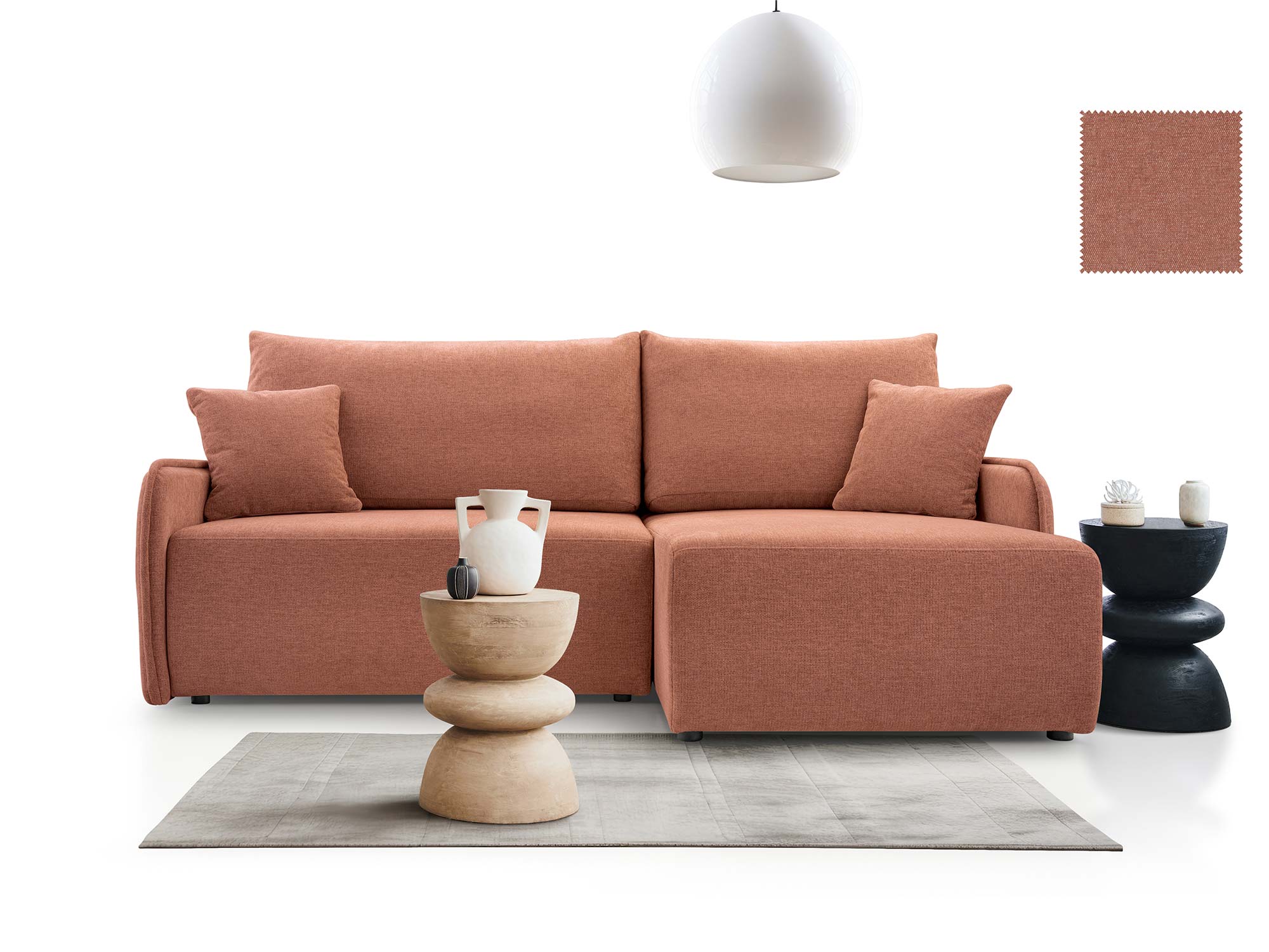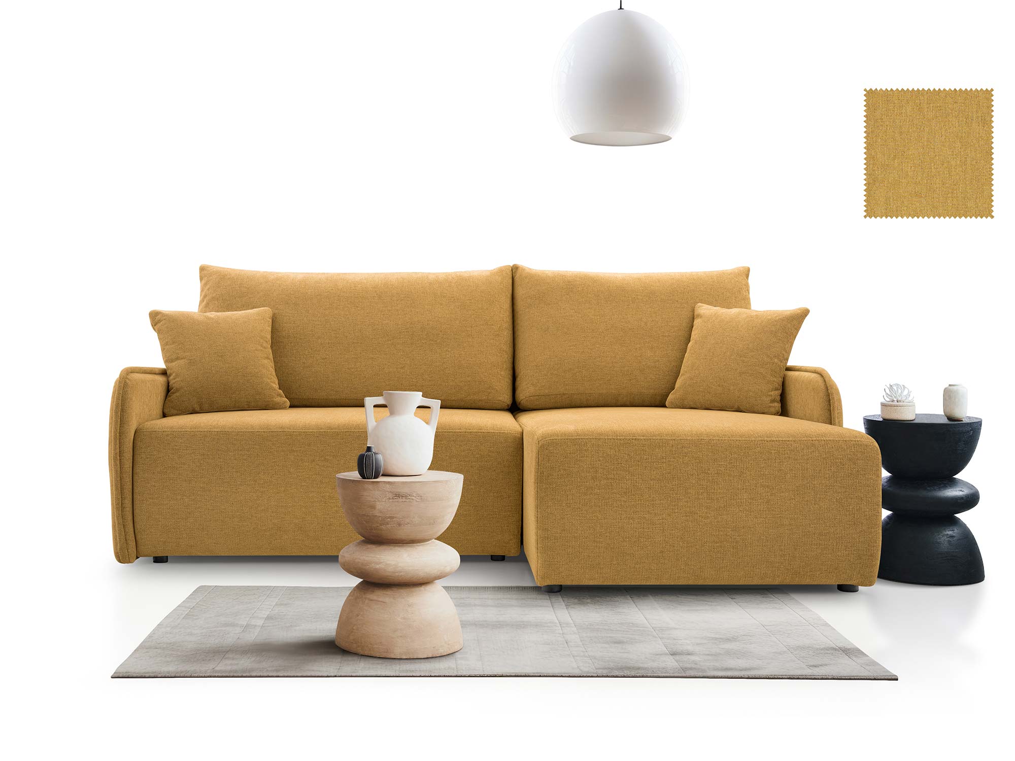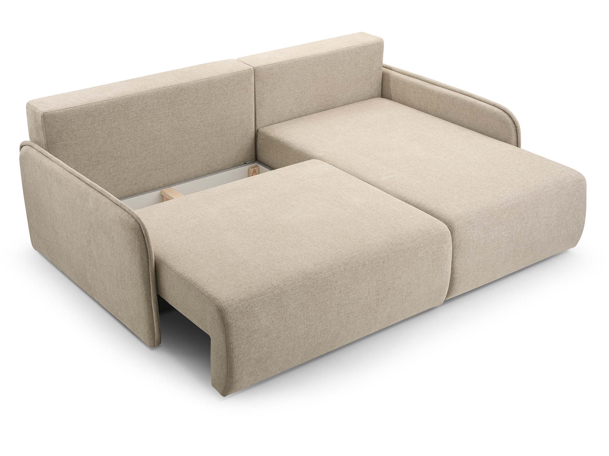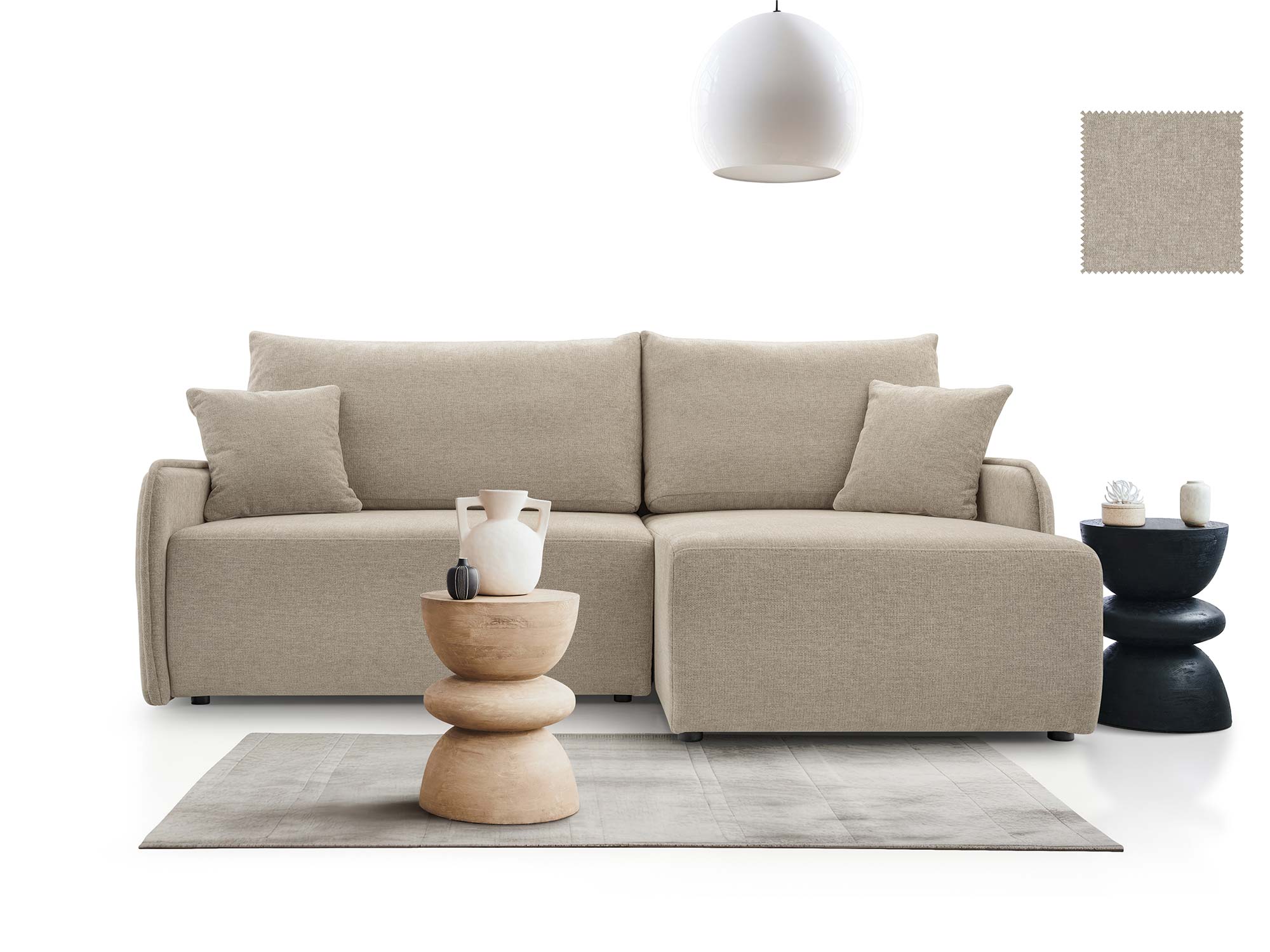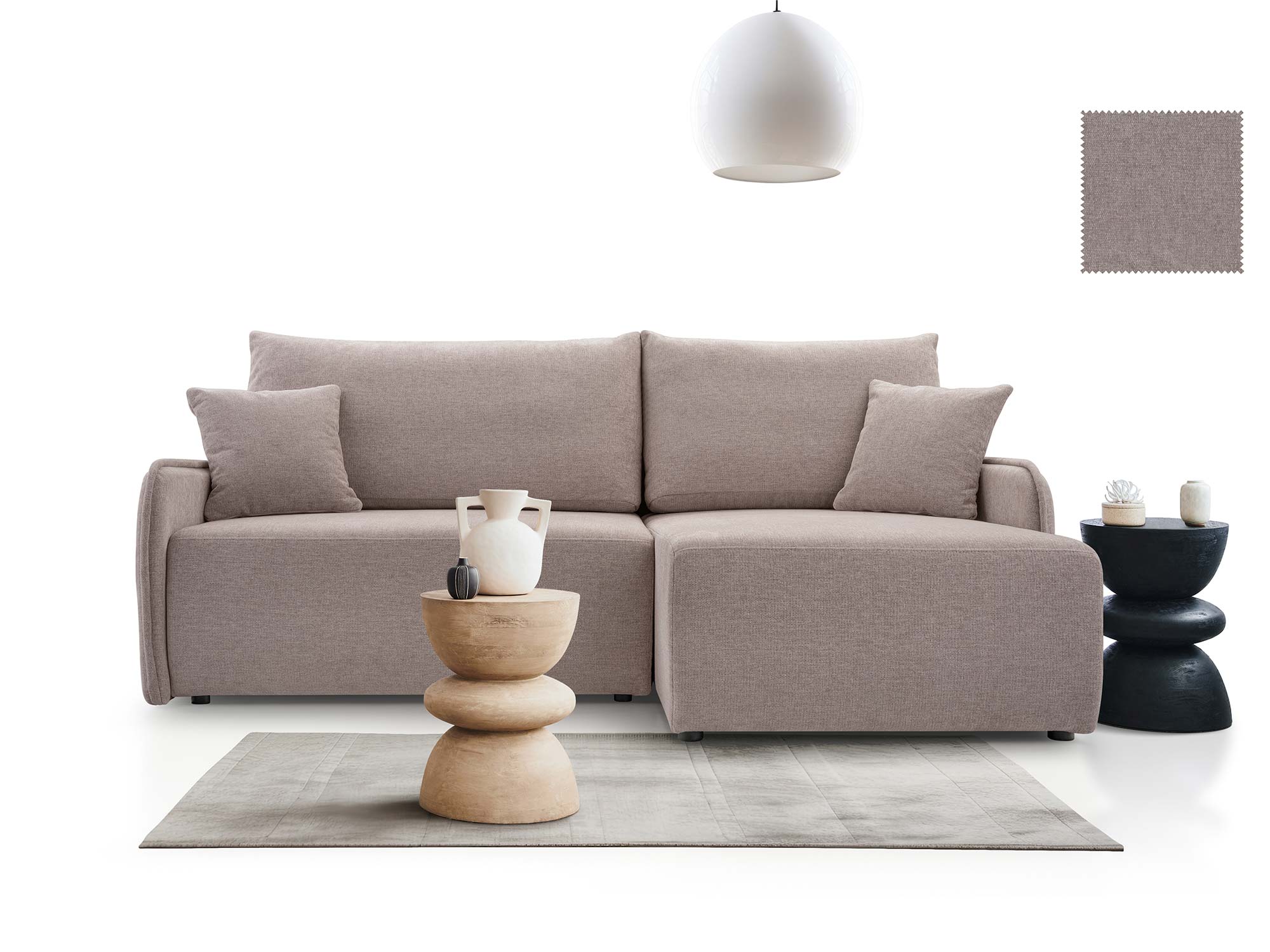 Mechanizm rozkładania typu DL sprawia, że rozłożenie kanapy jest proste i szybkie. W kilka chwil zmienisz ją w przestronne łóżko o powierzchni 188×130 cm. To rozwiązanie idealne, jeśli często odwiedzają Cię goście lub jeśli potrzebujesz dodatkowego miejsca do spania. Wbudowany pojemnik na pościel pozwala na przechowywanie kołder, poduszek i koców, utrzymując porządek i maksymalnie wykorzystując przestrzeń.