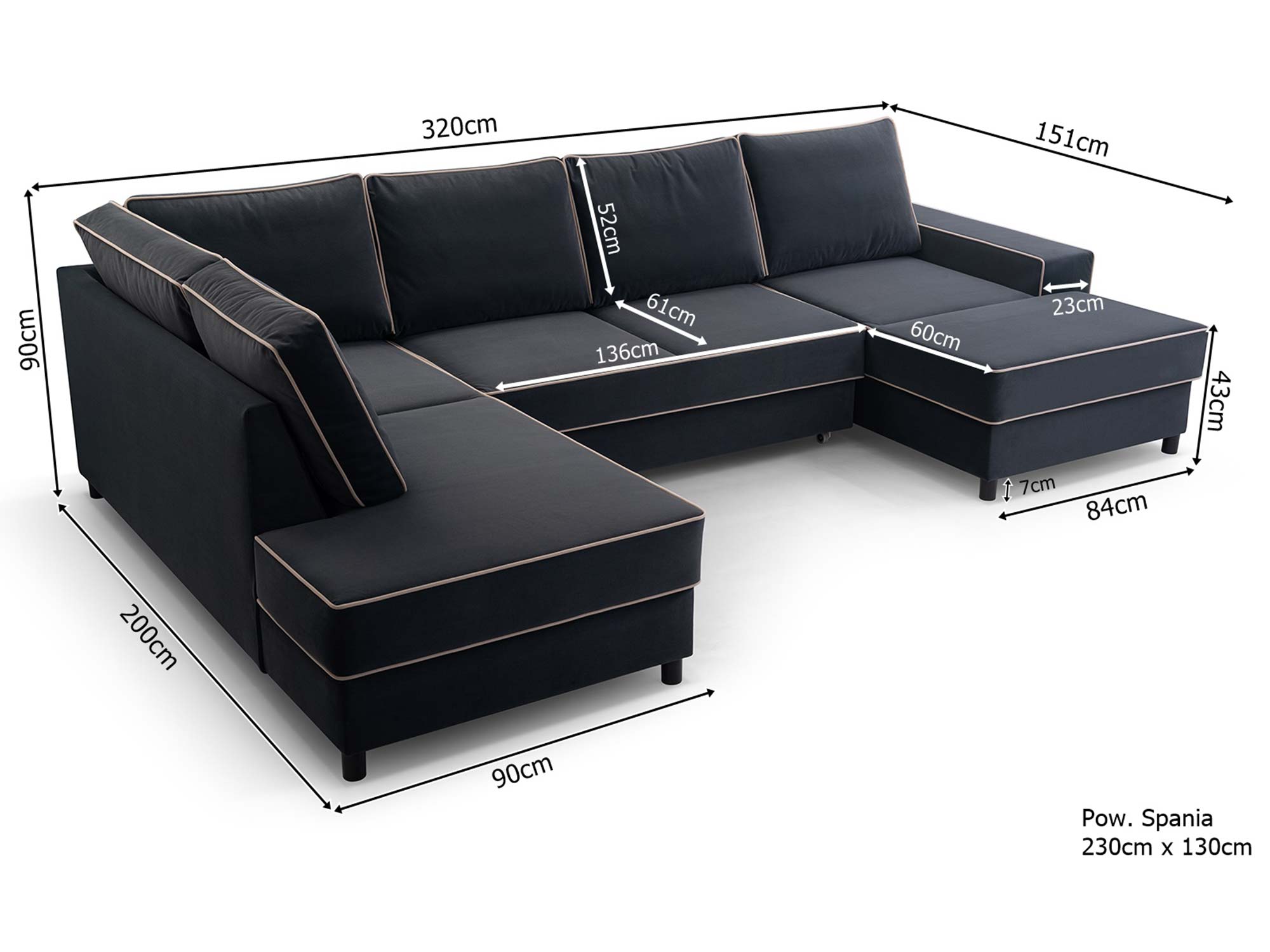 • Przestrzeń dla całej rodziny – duże wymiary sprawiają, że kanapa świetnie sprawdza się jako centralny punkt salonu.