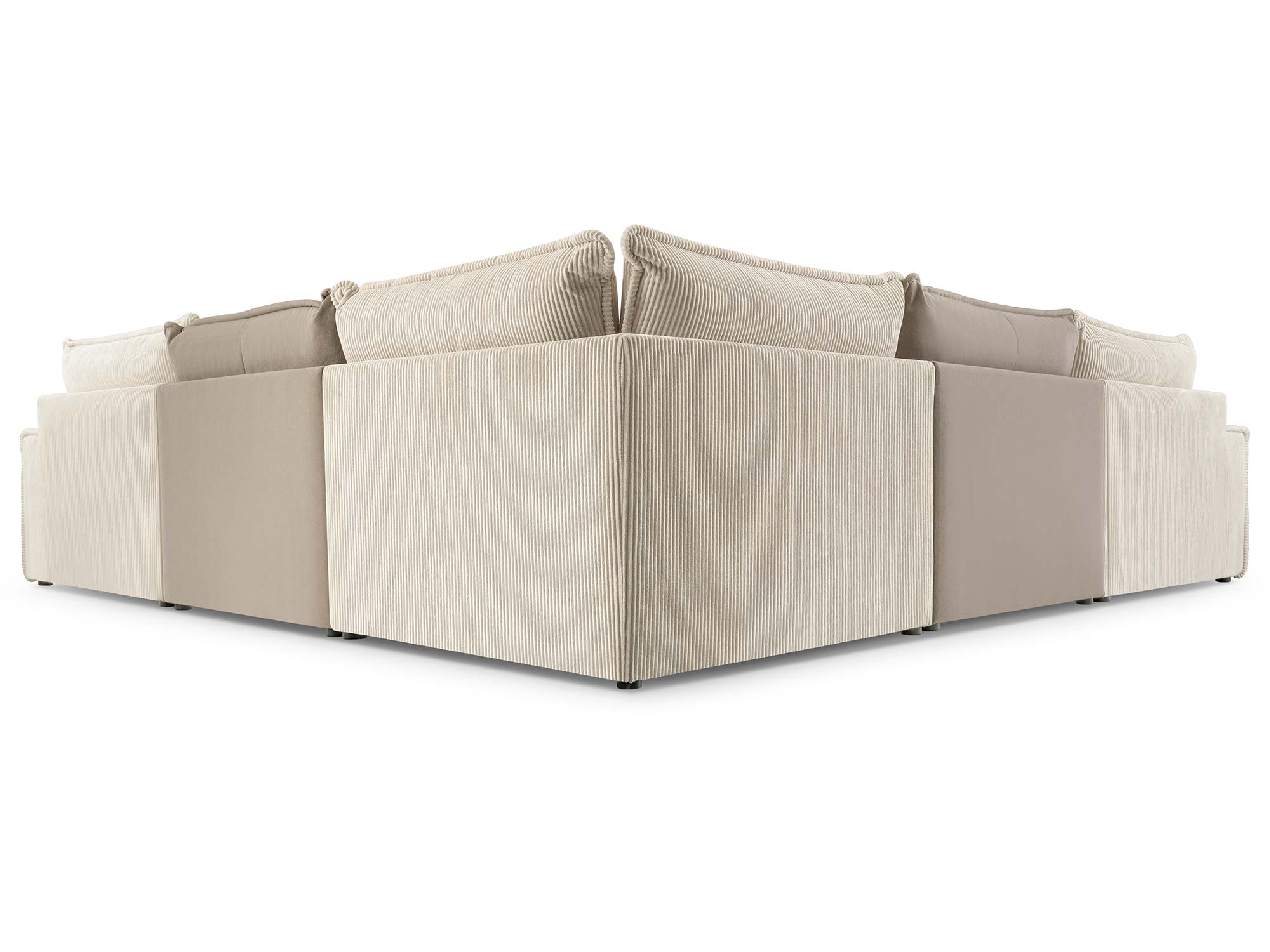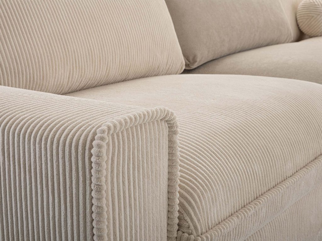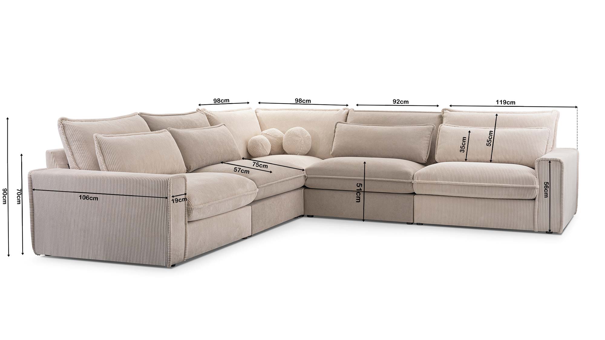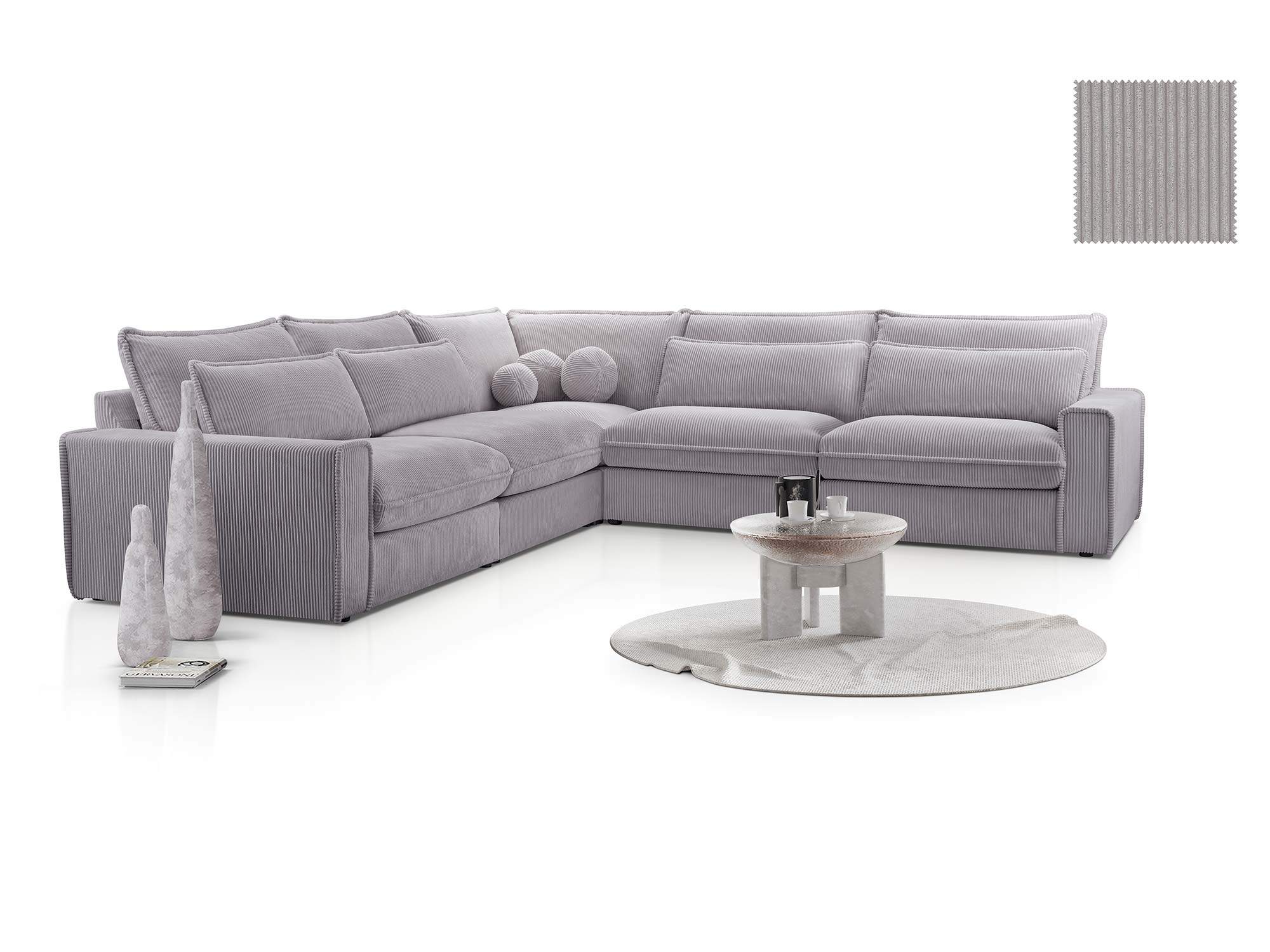 W zestawie znajdziesz 6 poduszek oparciowych, 4 poduszki płaskie oraz 3 ozdobne poduszki okrągłe. Dzięki nim narożnik nabiera wyjątkowego charakteru, a Ty możesz tworzyć aranżacje dopasowane do nastroju i okazji.