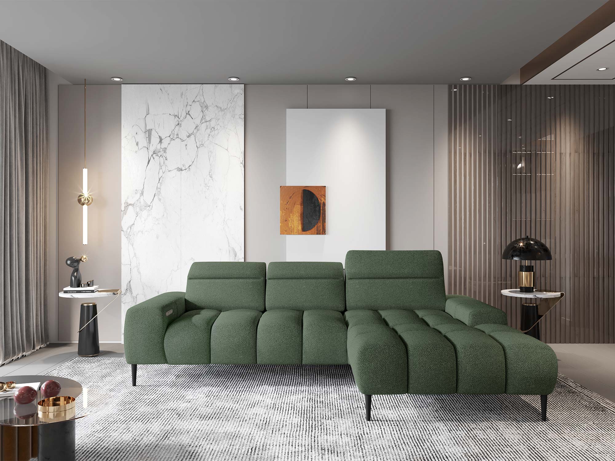 Chcesz, by salon wyglądał lekko, a jednocześnie zapraszał do długiego relaksu ? GIANO S łączy wyrafinowany design z technologią komfortu. Smukłe, metalowe nogi (ok. 15 cm) unoszą bryłę, subtelne przeszycia porządkują formę, a elektryczny wysuw siedziska (L-27) i ruchome zagłówki (3 szt.) pozwalają w sekundę dopasować głębokość i podparcie do nastroju. To narożnik, który pięknie wygląda i realnie ułatwia codzienne życie.