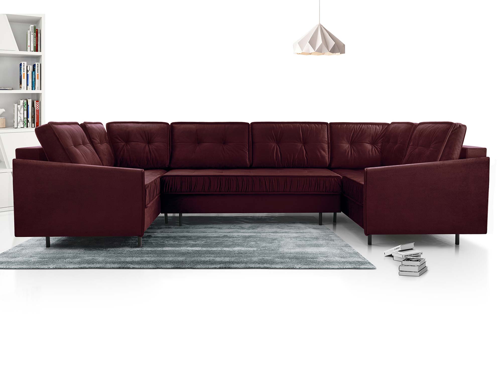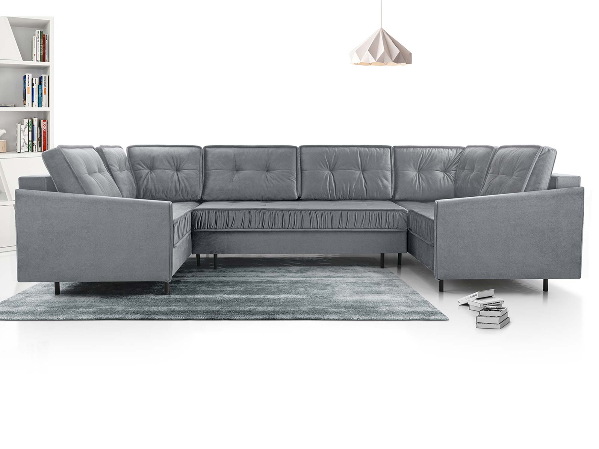 Komfort codziennego użytkowania podnoszą 8 poduszek oparciowych, które można dowolnie układać, dopasowując je do własnych preferencji. Wysokie oparcie – aż 105 cm – zapewnia ergonomiczne podparcie pleców i karku, dzięki czemu relaks staje się jeszcze przyjemniejszy. Flawka U łączy w sobie nowoczesny wygląd i funkcjonalność, a jego proporcje sprawiają, że świetnie sprawdzi się w przestronnych wnętrzach loftowych i industrialnych.