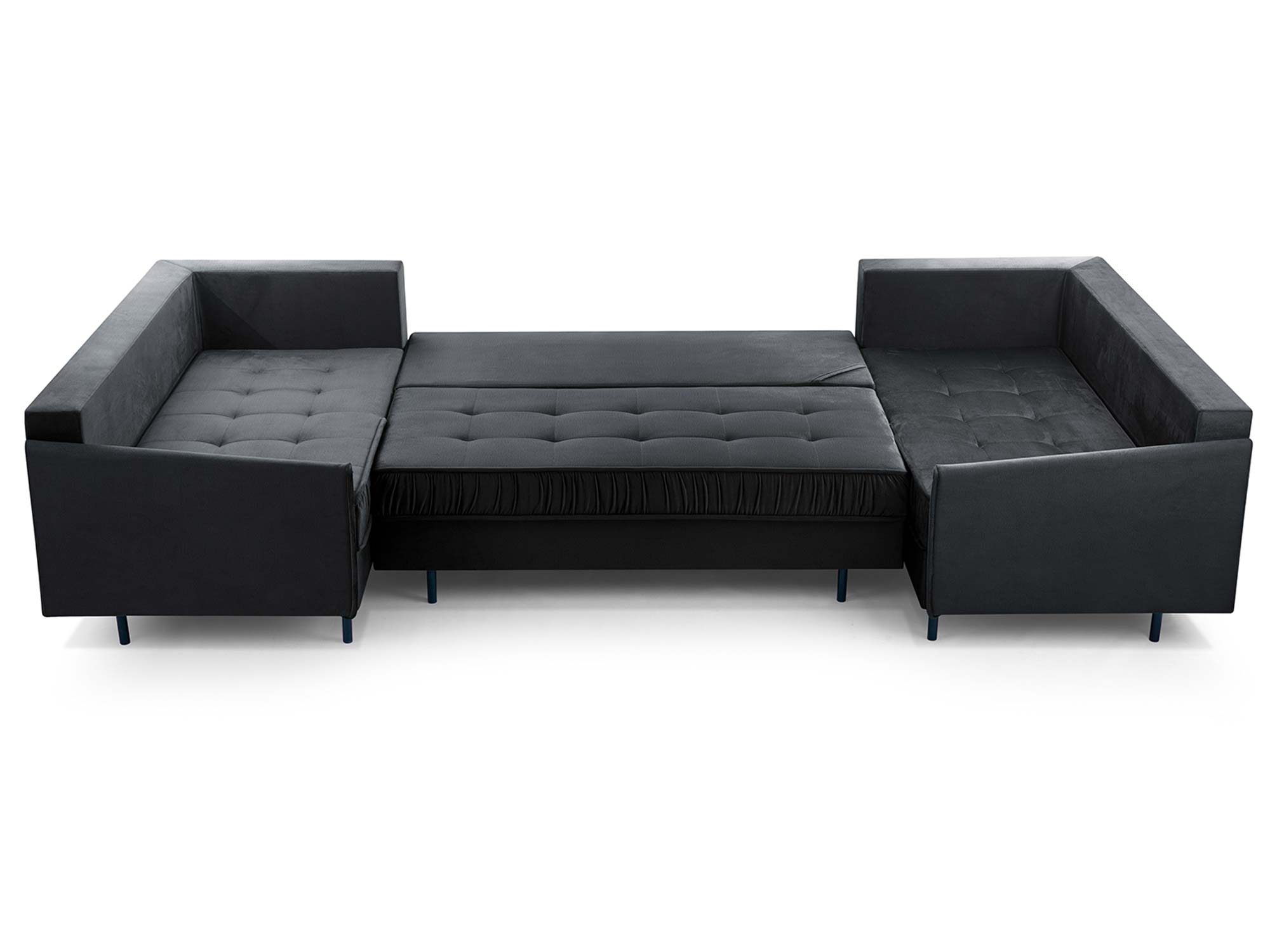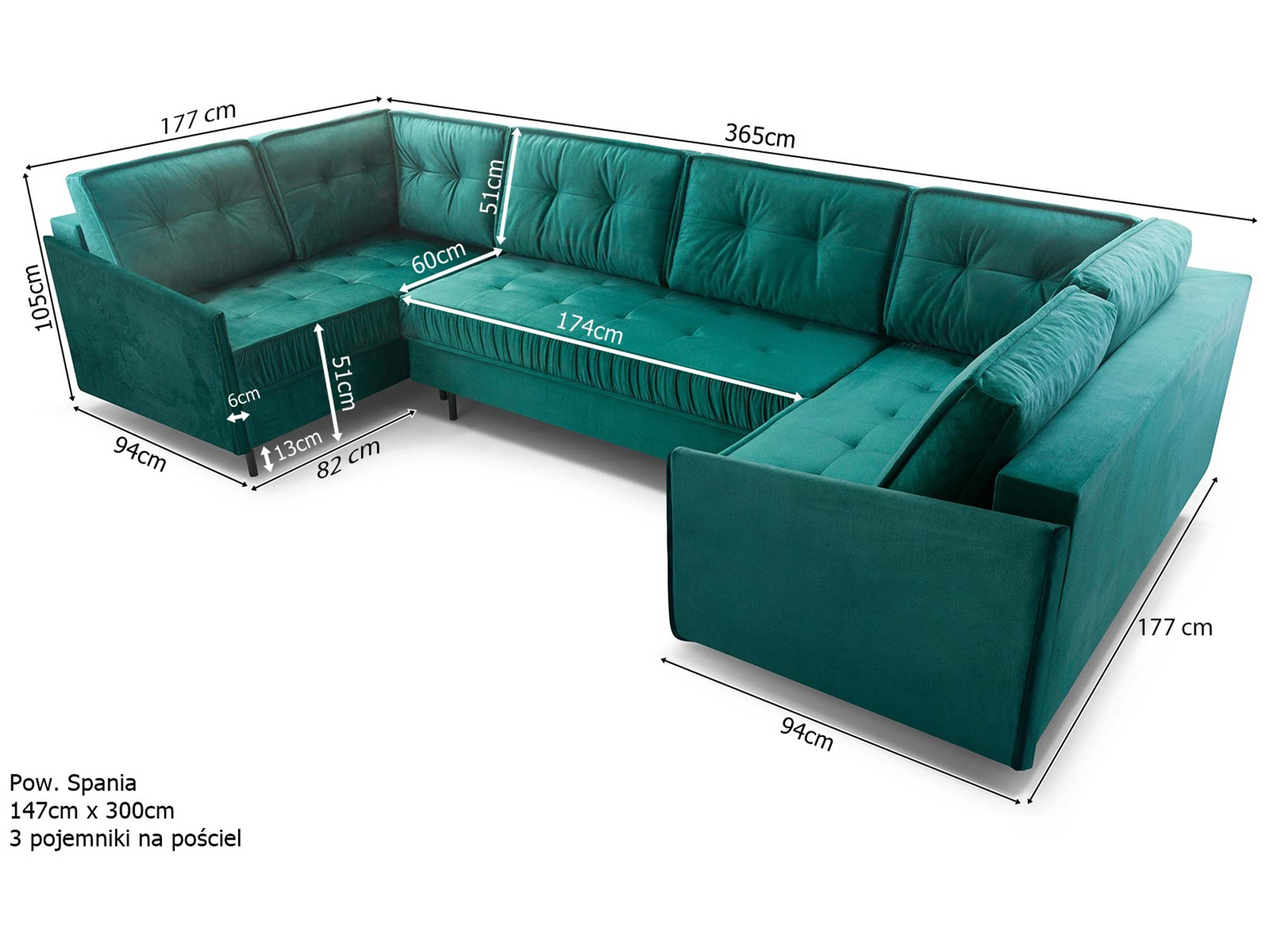 Dzięki systemowi rozkładania DL, narożnik w kilka chwil zmienia się w wygodne łóżko z powierzchnią spania o wymiarach 300×147 cm. To idealne rozwiązanie zarówno na co dzień, jak i podczas wizyty gości. Co więcej, narożnik został wyposażony w aż 3 pojemniki na pościel, które pozwalają na wygodne przechowywanie kołder, koców i poduszek, pomagając zachować porządek w salonie.