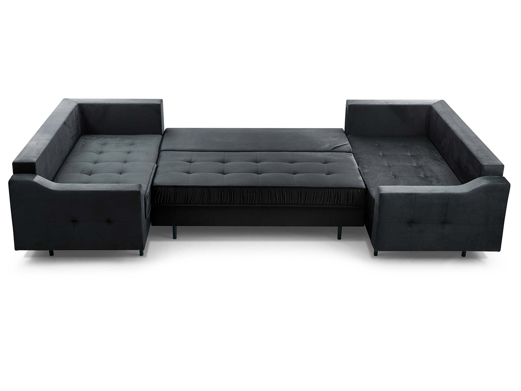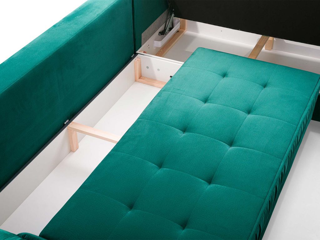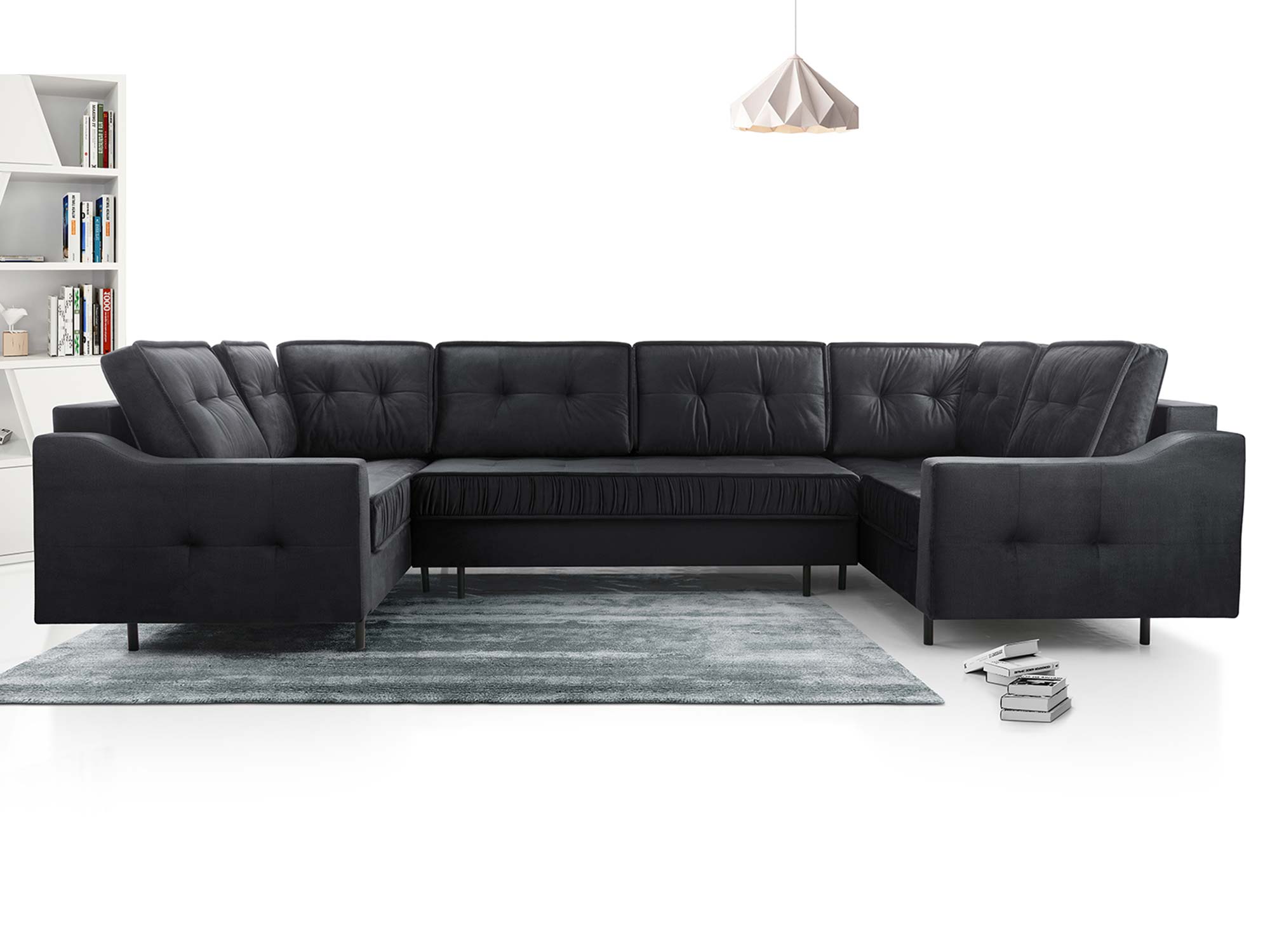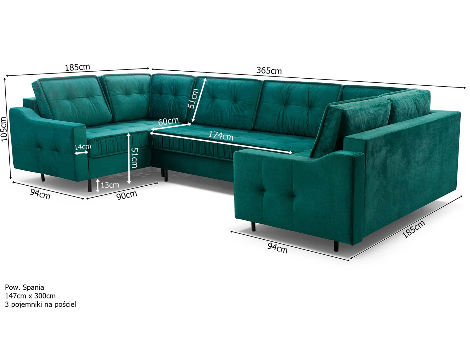 Wygodny system rozkładania DL umożliwia szybkie przekształcenie narożnika w łóżko z powierzchnią spania 300×147 cm. Co więcej, model Tulano U posiada aż 3 pojemniki na pościel, dzięki którym przechowywanie kołder, koców czy poduszek staje się proste i wygodne. To idealne rozwiązanie dla osób ceniących porządek i funkcjonalne wnętrza.