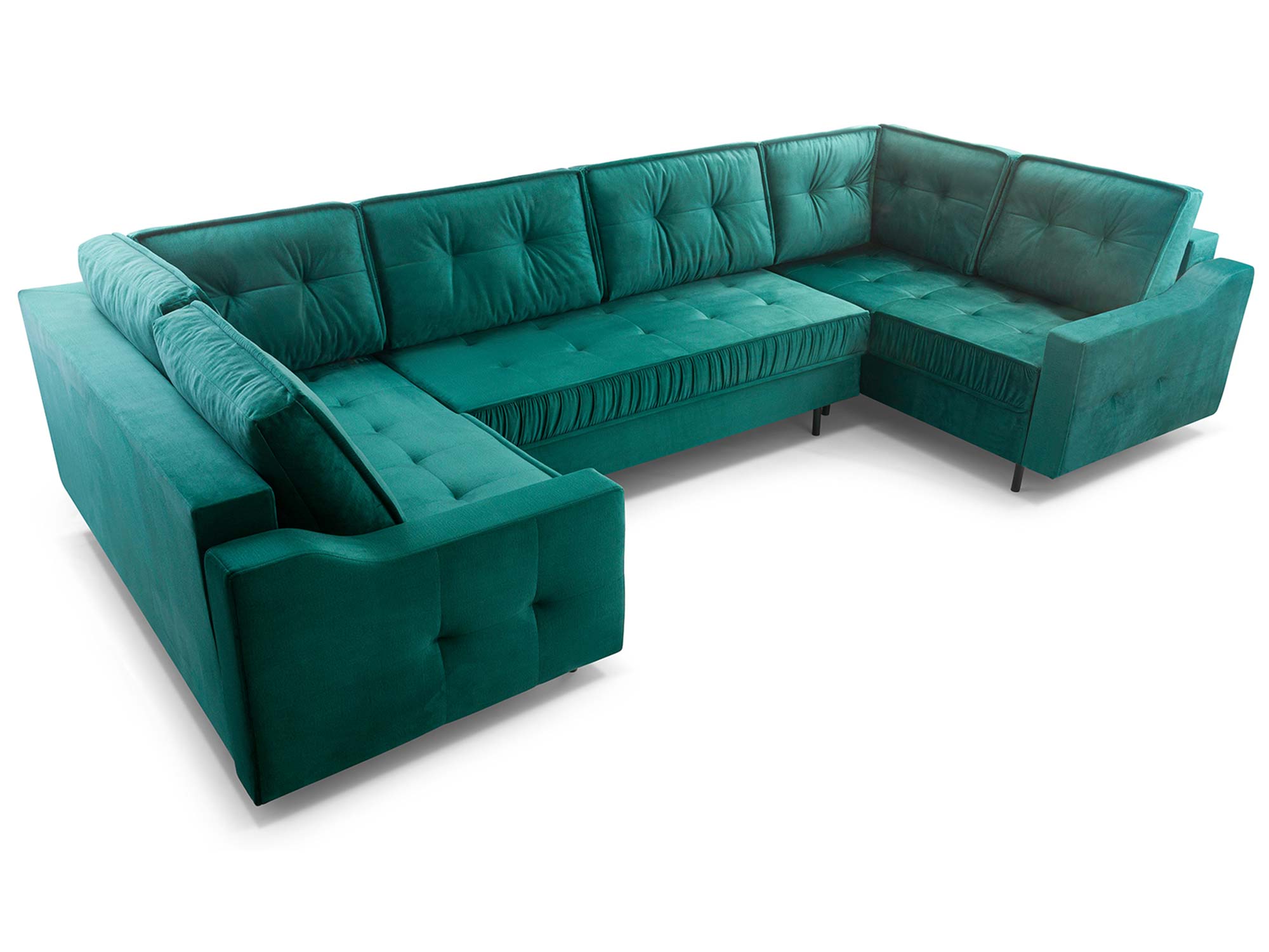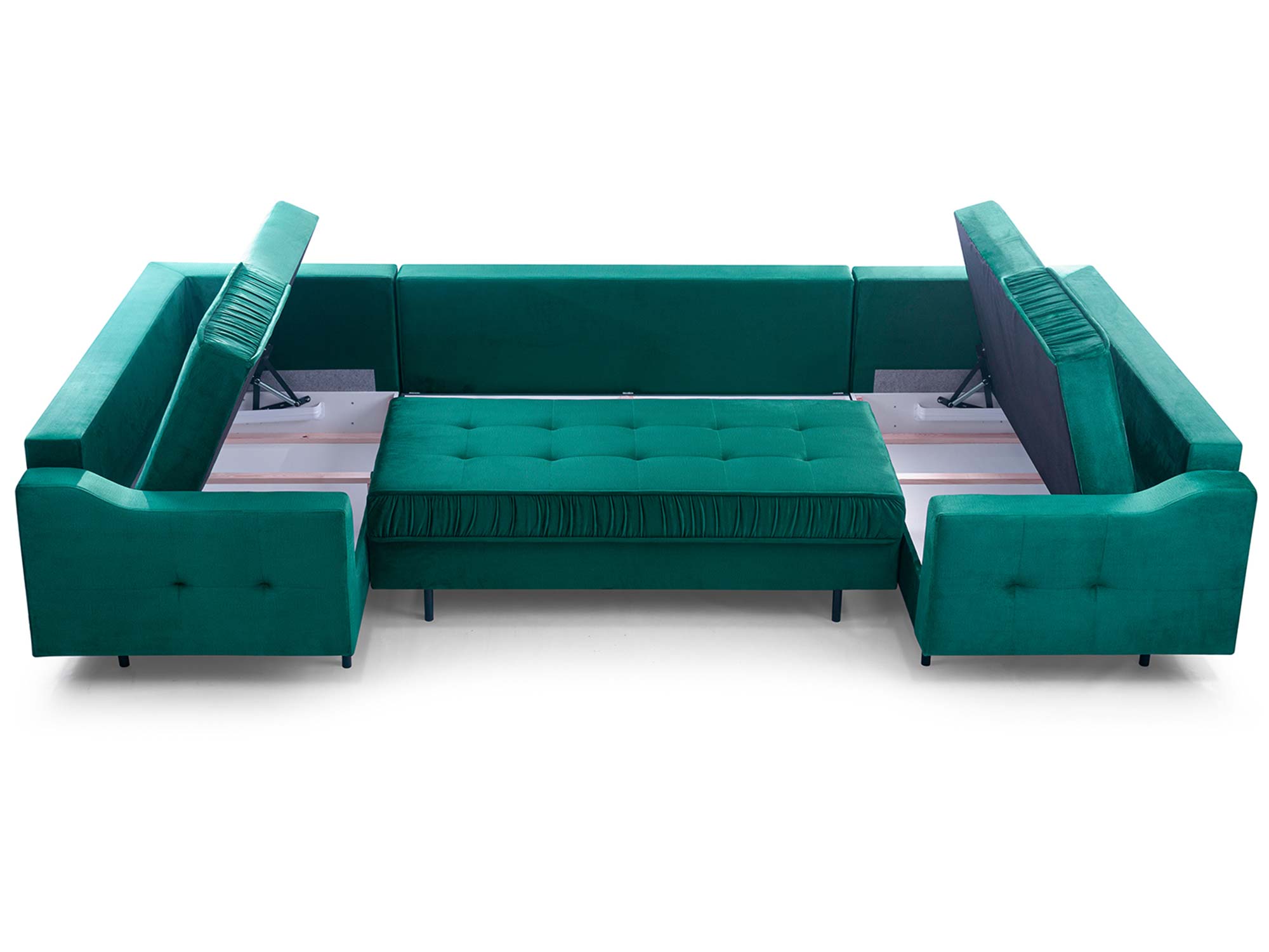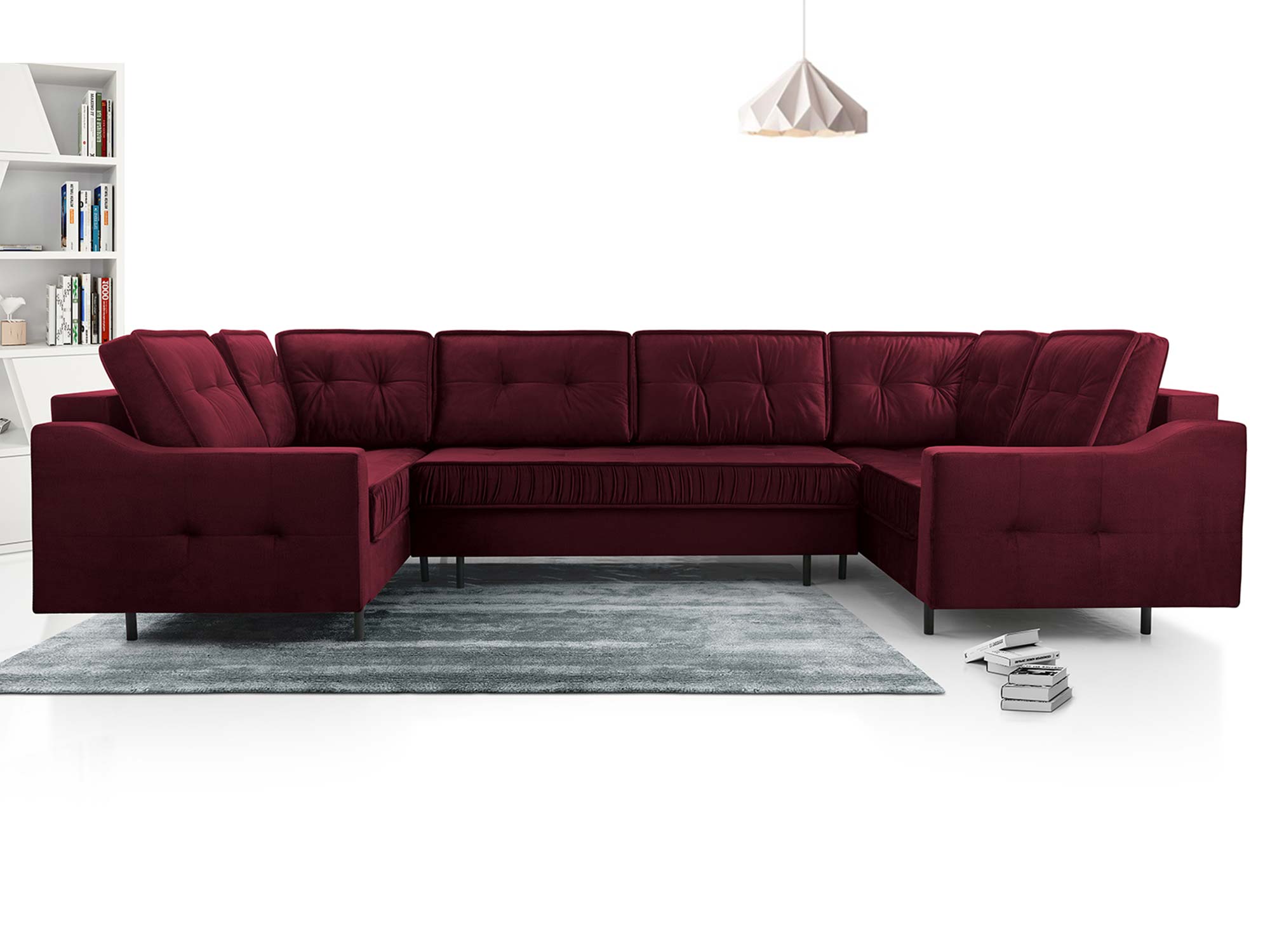 Wygodny system rozkładania DL umożliwia szybkie przekształcenie narożnika w łóżko z powierzchnią spania 300×147 cm. Co więcej, model Tulano U posiada aż 3 pojemniki na pościel, dzięki którym przechowywanie kołder, koców czy poduszek staje się proste i wygodne. To idealne rozwiązanie dla osób ceniących porządek i funkcjonalne wnętrza.