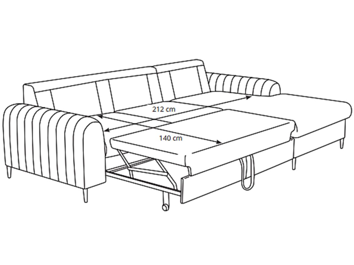 Szerokość: 252 cm / Wysokość: 106,5 cm / Głębokość: 90-168 cm Powierzchnia spania: 140 / 220 cm
