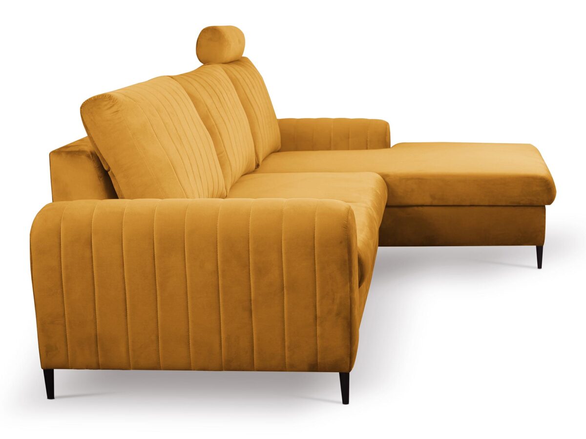 - Design, który Zdobędzie Serca: Złote nóżki i przeszycia nie tylko nadają narożnikowi elegancji, ale także podkreślają jego unikatowy charakter, idealnie pasujący do wnętrz glamour.