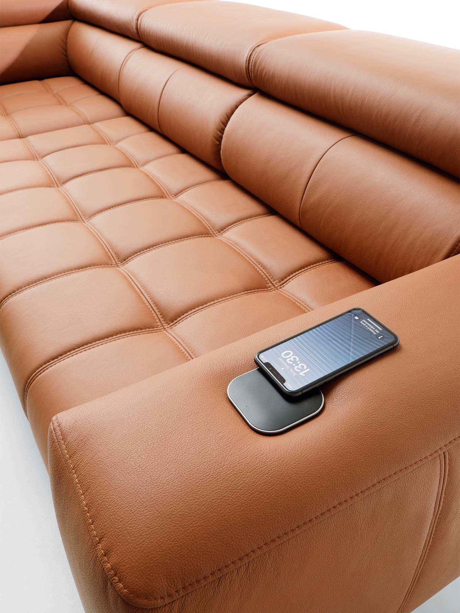 Baggio łączy klasyczną, ponadczasową bryłę z nowoczesnymi technologiami. Delikatne pikowania, równe przeszycia i harmonijne proporcje nadają mu prestiżowego charakteru, a smukłe nóżki optycznie unoszą bryłę, wprowadzając lekkość do wnętrza. Wykończenie ze skóry naturalnej podkreśla luksusową estetykę i oferuje praktyczne korzyści: piękne starzenie, łatwiejszą pielęgnację i przyjemną w dotyku fakturę.