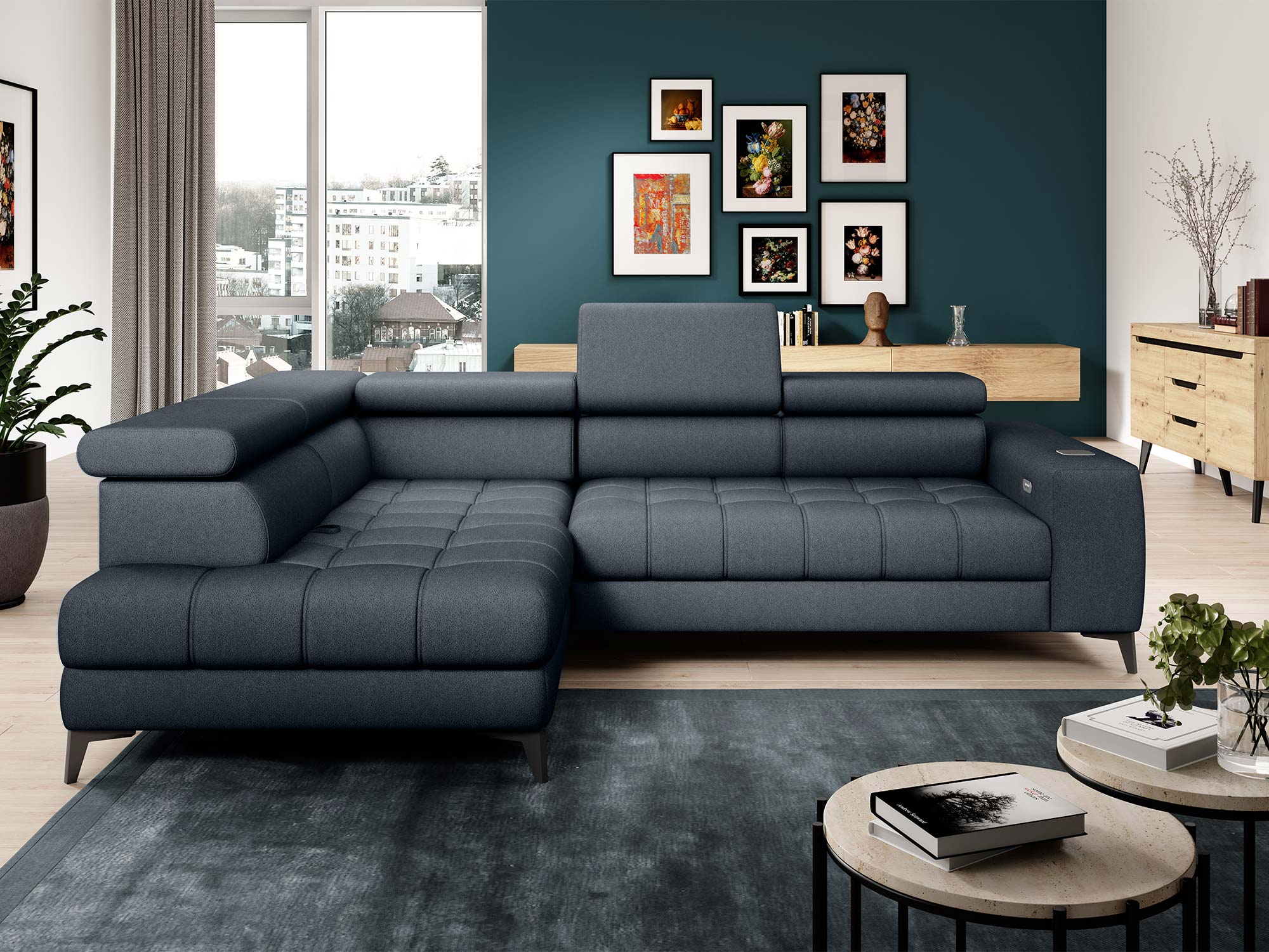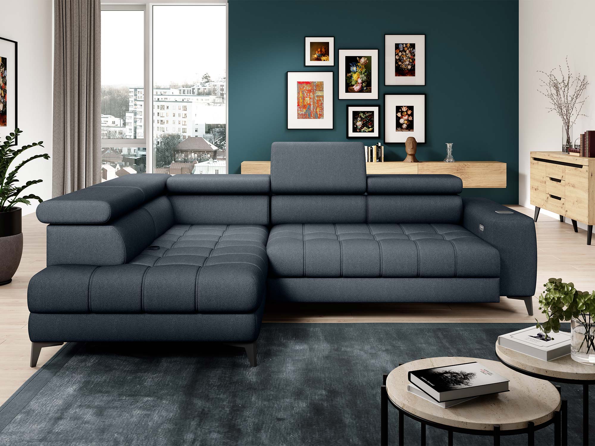 Wyobraź sobie, że siadasz i jednym dotknięciem zamieniasz elegancką sofę w strefę totalnego relaksu. Baggio to narożnik prawo/lewostronny, który łączy komfort klasy premium z ponadczasową estetyką. Elektrycznie regulowana głębokość siedziska, ruchome zagłówki (funkcja relax) i przesuwane oparcia pozwalają dopasować mebel do Twojego ciała i nastroju. A wisienką na torcie jest wbudowana ładowarka indukcyjna – odkładasz telefon i… ładujesz energię podwójnie: swoją i baterii.