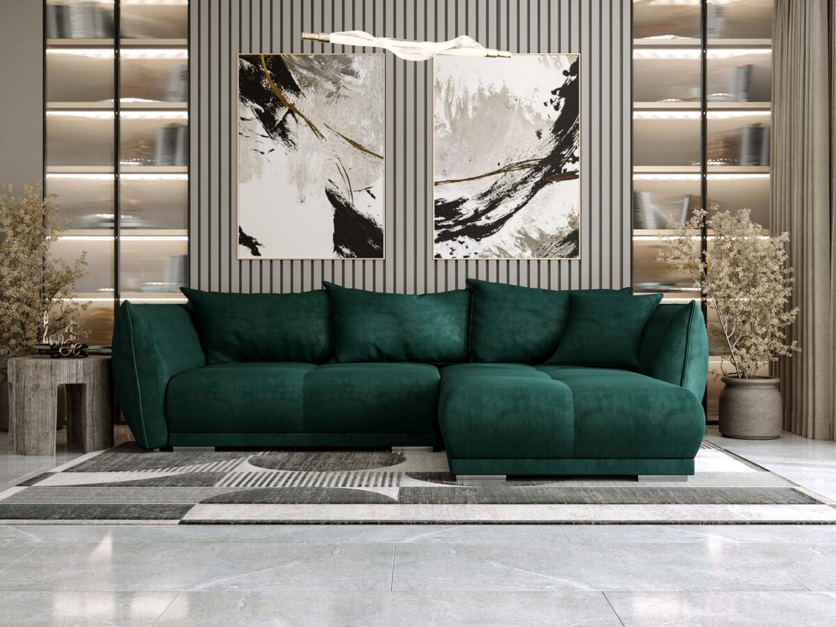 Narożnik HIACYNT to nie tylko praktyczne rozwiązanie, ale także element dekoracyjny, który wniesie elegancję do każdego wnętrza. Jego nowoczesna bryła oraz ruchome podłokietniki podkreślają wyjątkowy styl, który wpisuje się w aktualne trendy wnętrzarskie. Dzięki starannemu wykończeniu i użyciu wysokiej jakości materiałów, ten narożnik jest nie tylko piękny, ale także trwały.