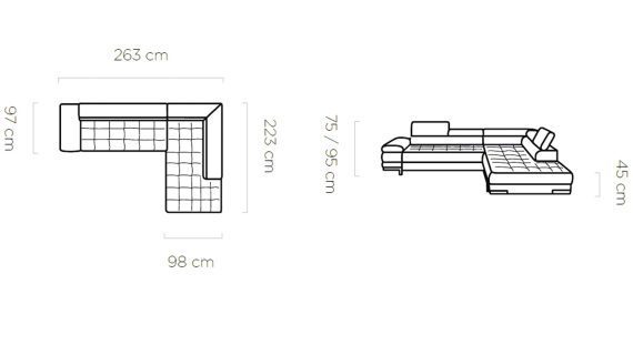 Selva L zachwyca czystą, współczesną linią. Kształt litery L ergonomicznie porządkuje przestrzeń wypoczynkową, a delikatne przeszycia i nowoczesne akcenty nadają bryle lekkości. Wysokiej jakości tapicerka – do wyboru wśród wielu tkanin – pozwala dopasować mebel do aranżacji w stylu minimalistycznym, modern premium czy skandynawskim.
