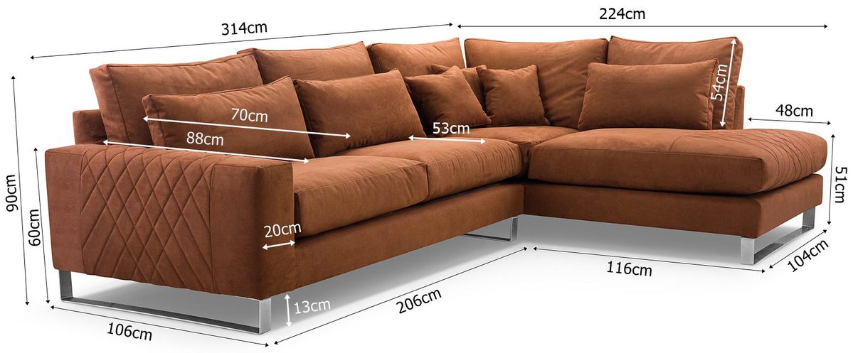 Narożnik z Zagłówkami i Chromowanymi Nóżkami BRUCE