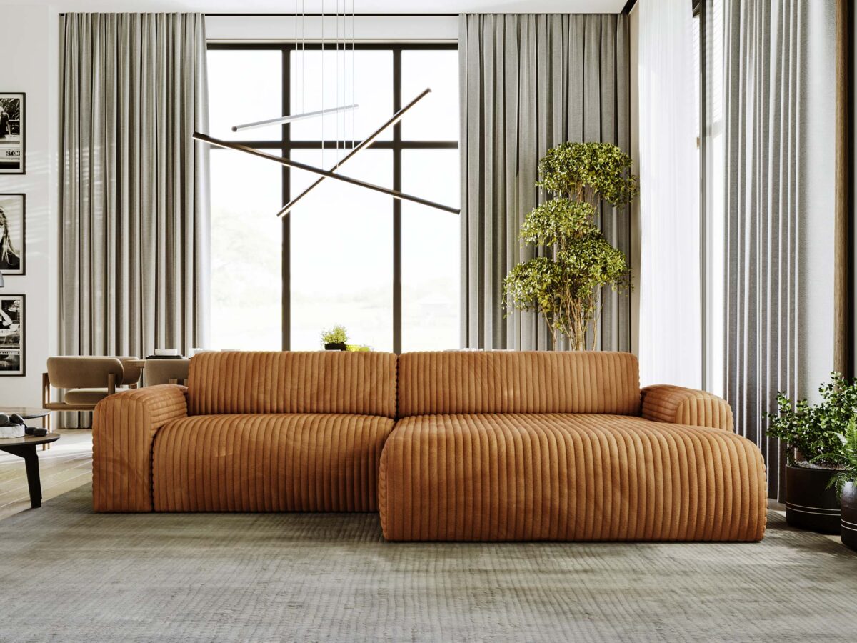 Jednym z najważniejszych elementów wyróżniających narożnik LUIZZI są jego zaokrąglone boki, które nadają mu niepowtarzalnego uroku i miękkości. Dzięki takim detalom, mebel nie tylko wygląda estetycznie, ale również zapewnia dodatkowy komfort podczas codziennego użytkowania. Ergonomiczny kształt sprawia, że LUIZZI doskonale wpasowuje się w nowoczesne, eleganckie wnętrza, tworząc wygodny kącik do relaksu i odpoczynku.