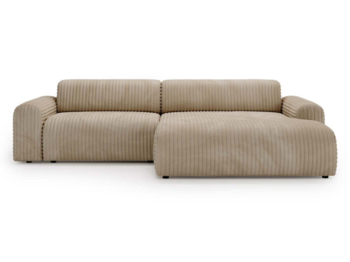 Beżowy narożnik LUIZZI to mebel, który łączy nowoczesny design z funkcjonalnością, zapewniając komfort na co dzień. Dzięki zaokrąglonym bokom i przemyślanej konstrukcji, jest to mebel, który nie tylko wygląda estetycznie, ale również oferuje niezwykłą wygodę. LUIZZI to narożnik idealny do większych przestrzeni, który stanie się centralnym punktem Twojego salonu.