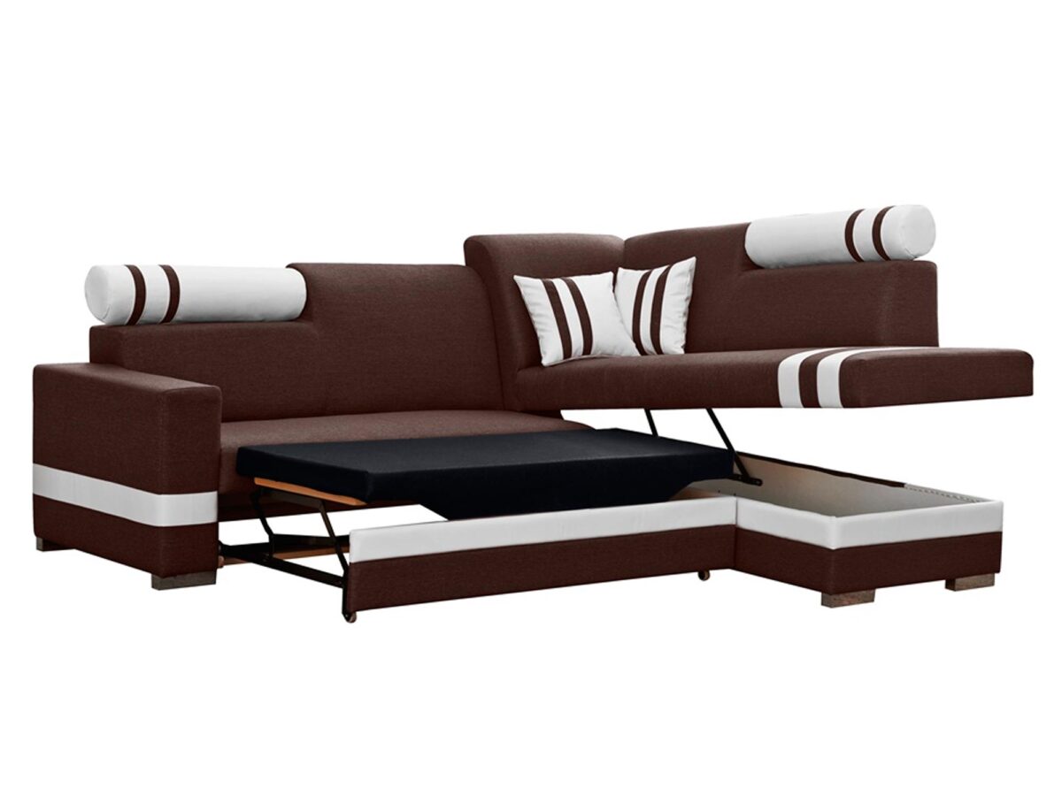 Co najważniejsze narożnik posiada solidny drewniany stelażu i nóżki w kolorze chromu dzięki czemu konstrukcja jest trwała i stabilna. Ponadto mebel w zestawie posiada ozdobne poduszki i dwa zagłówki o zaokrąglonym kształcie. Gwarantują one przede wszystkim maksymalny komfort wypoczynku. Dodatkowo model STEVEN wyposażono w przestronny pojemnik, w którym z powodzeniem można przechowywać koce, kołdry oraz poduszki.