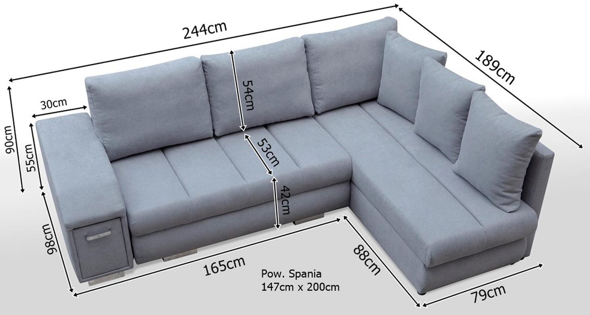 Narożnik do Spania z Poduszkami wymiary AGNES