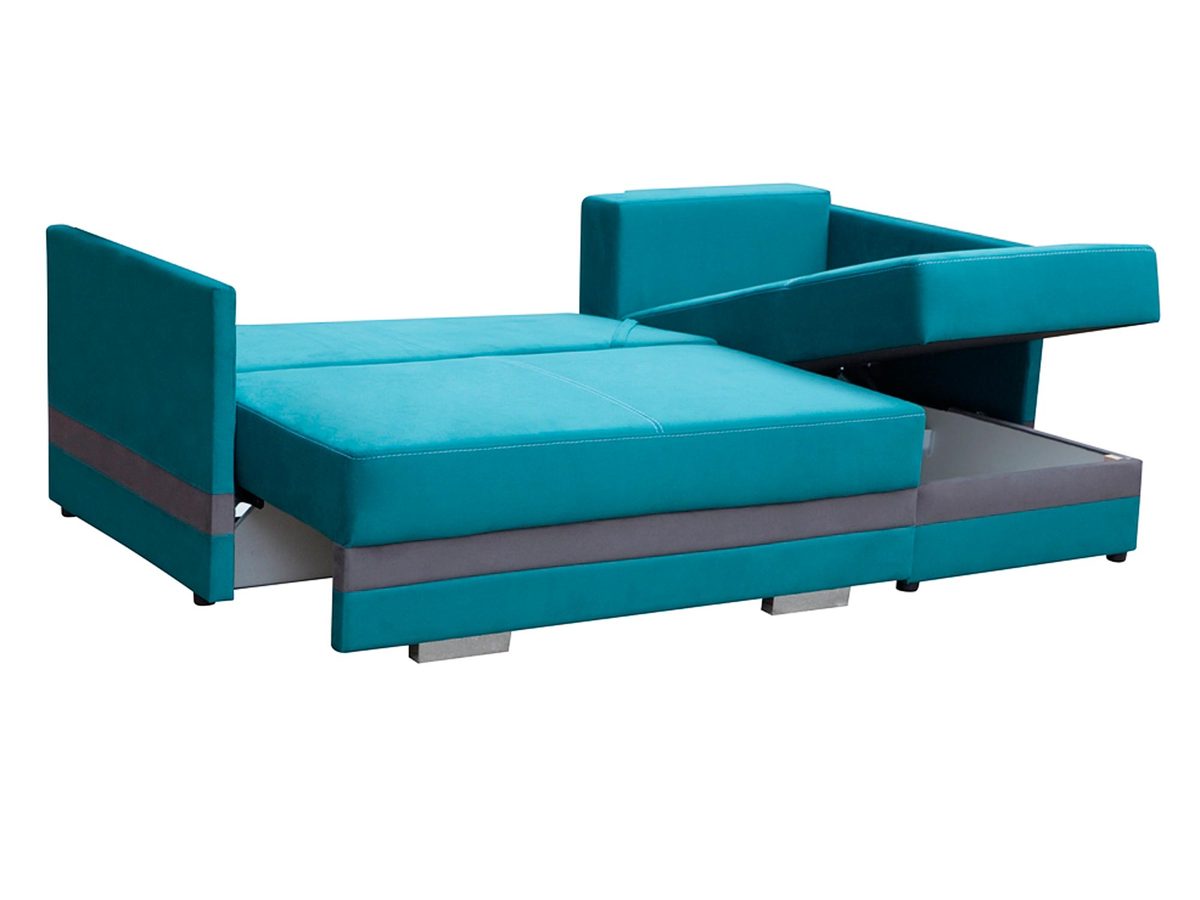 Narożnik Turkusowy z Funkcją Spania rozłożony VICTOR