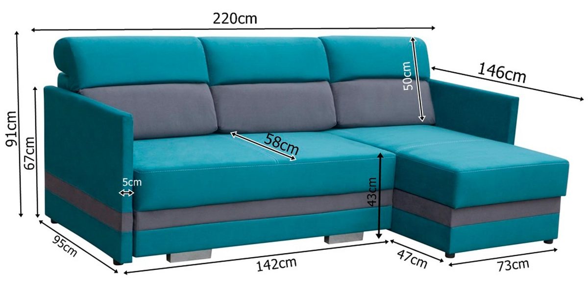Narożnik Turkusowy z Funkcją Spania wymiary VICTOR